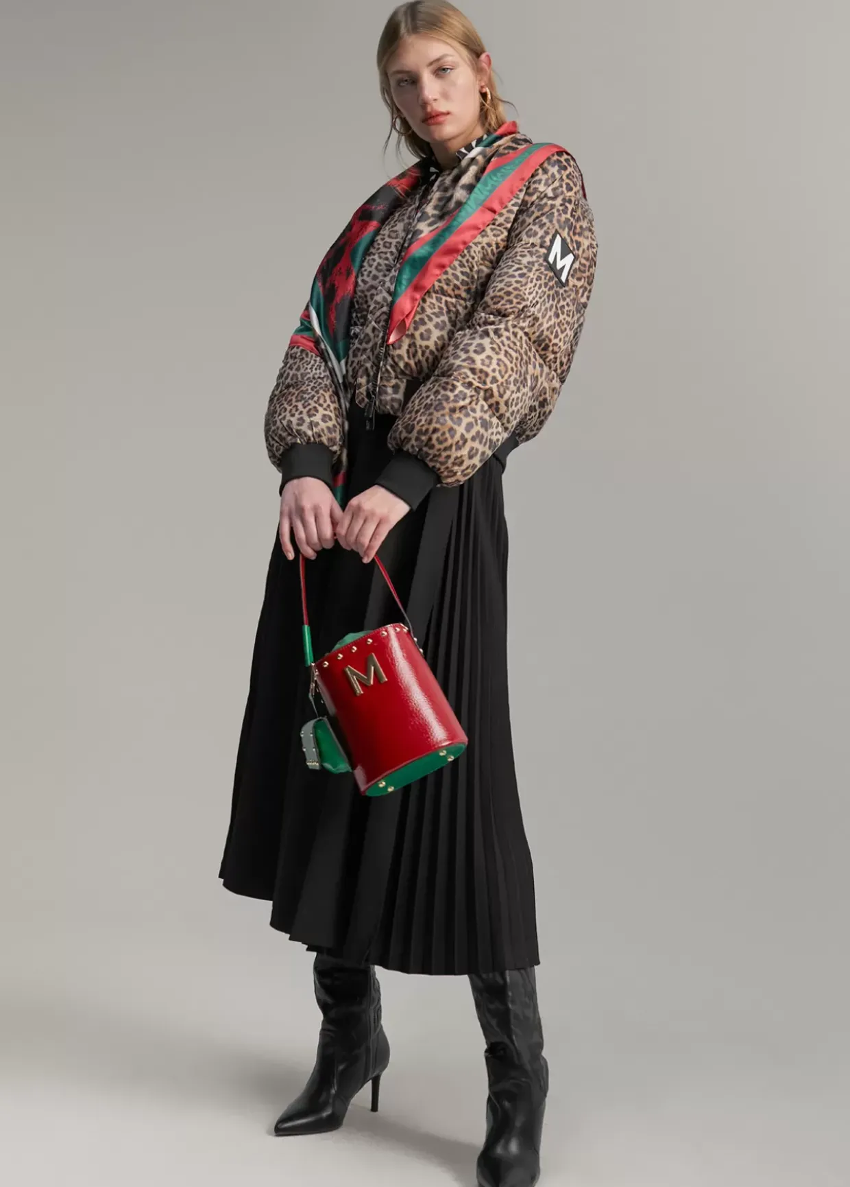 Anorak corto en estampado animal print. Cuello, puños y bajo de punto. Cerrado con cremallera. Bolsillos laterales y M bicolor de silicona en manga.