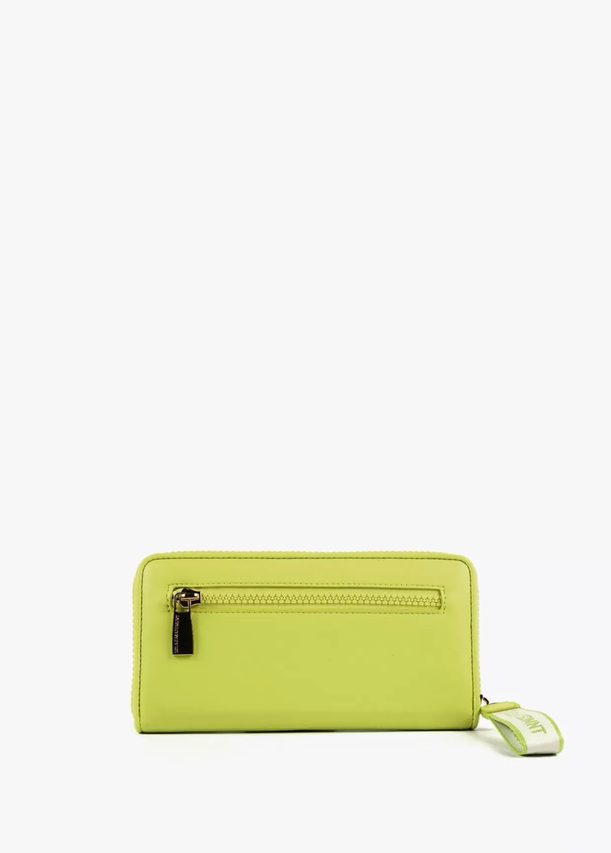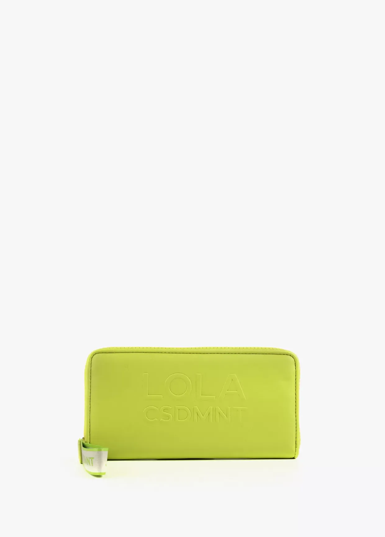 Billetero grande en efecto piel y logo en relieve. Asa de mano logotipada, cierre de cremallera y logo lacado en parte frontal.