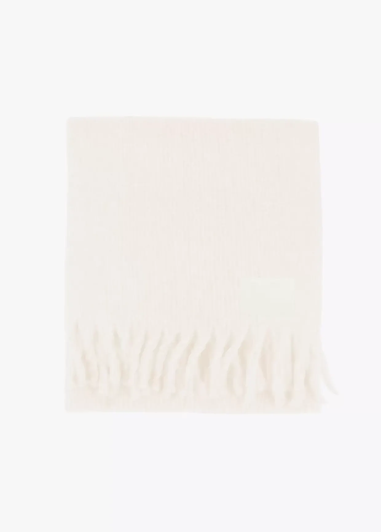 Bufanda unicolor con flecos en extremos y logo grabado sobre efecto piel.