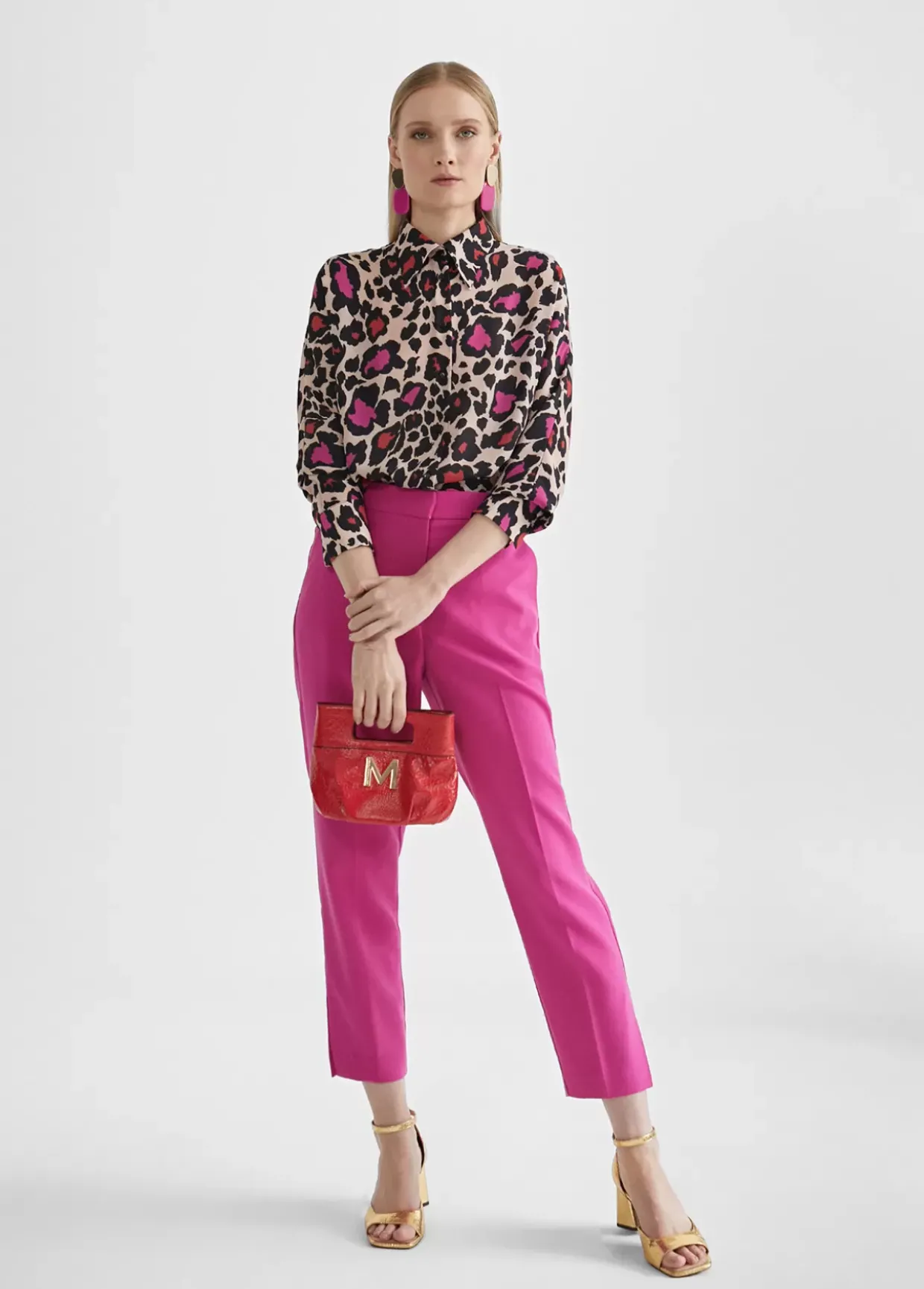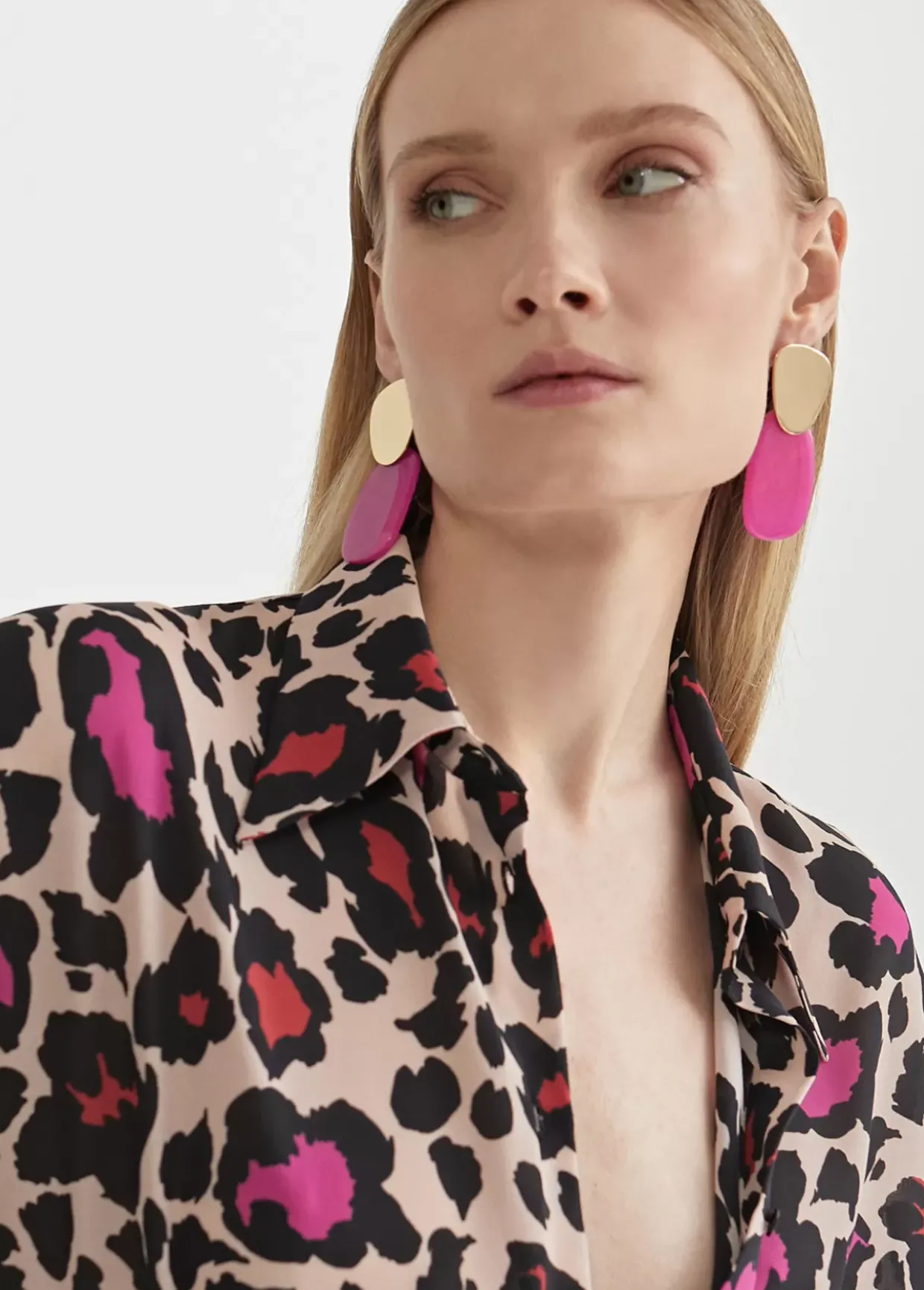 Camisa en estampado animal print. Cuellos y puños camiseros. Tejido fluido.