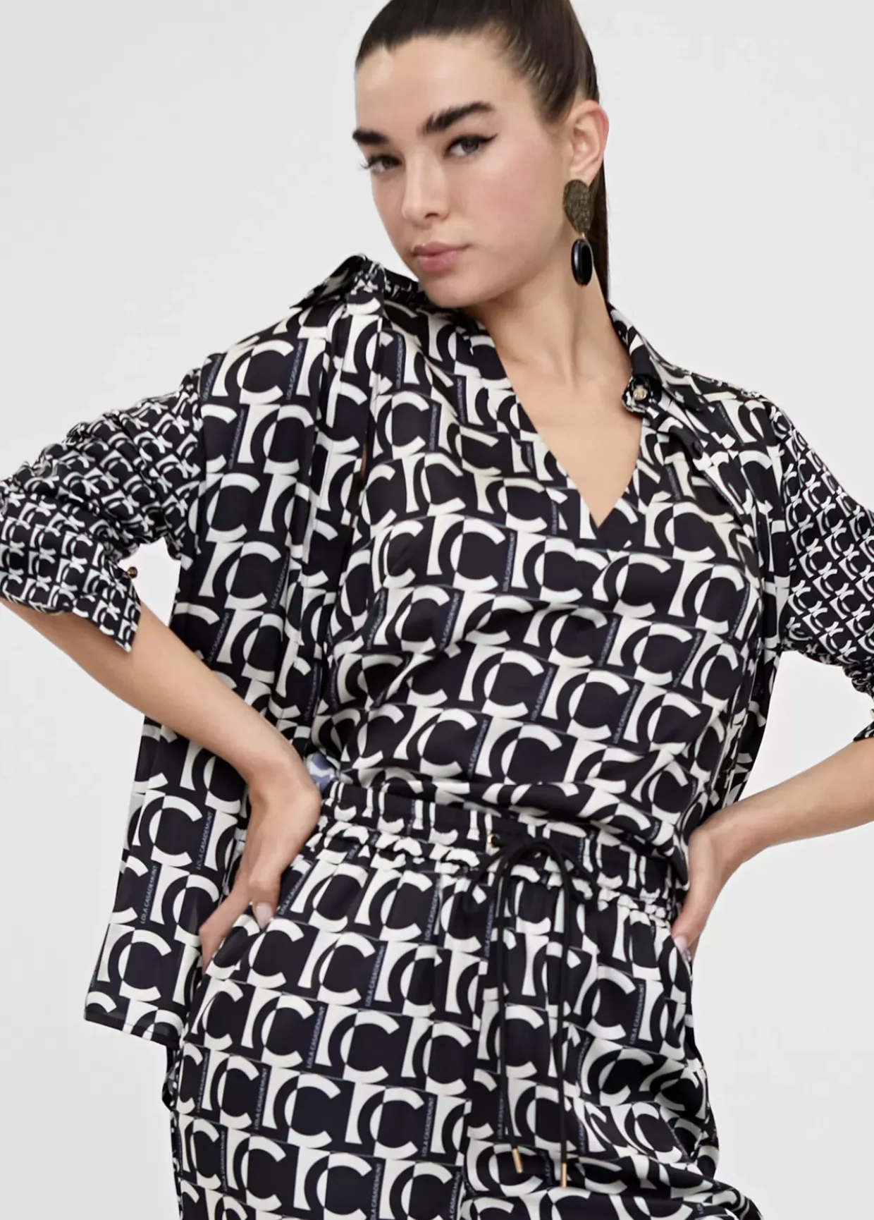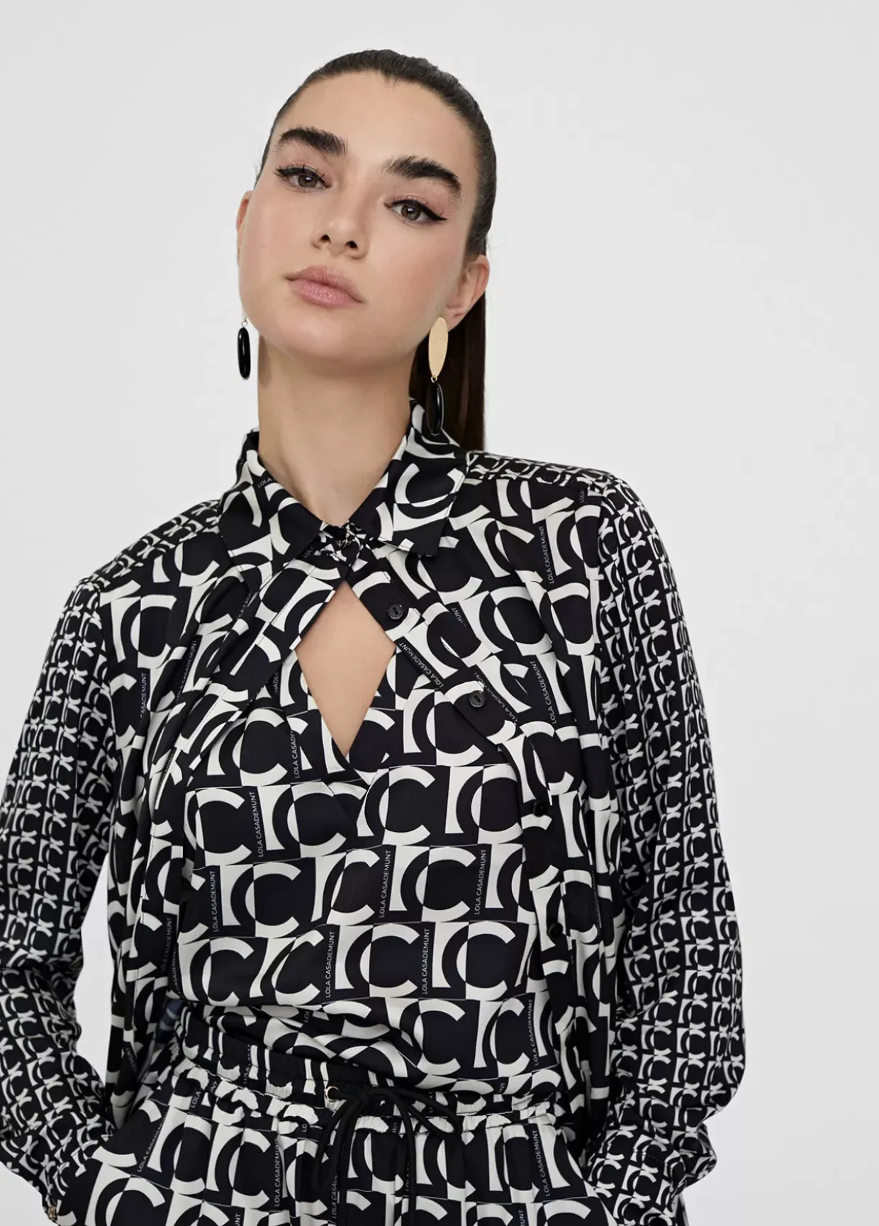 Camisa fluida de manga larga. Estampado maxi y mini monograma LC, bicolor. Cuello y puños camiseros.