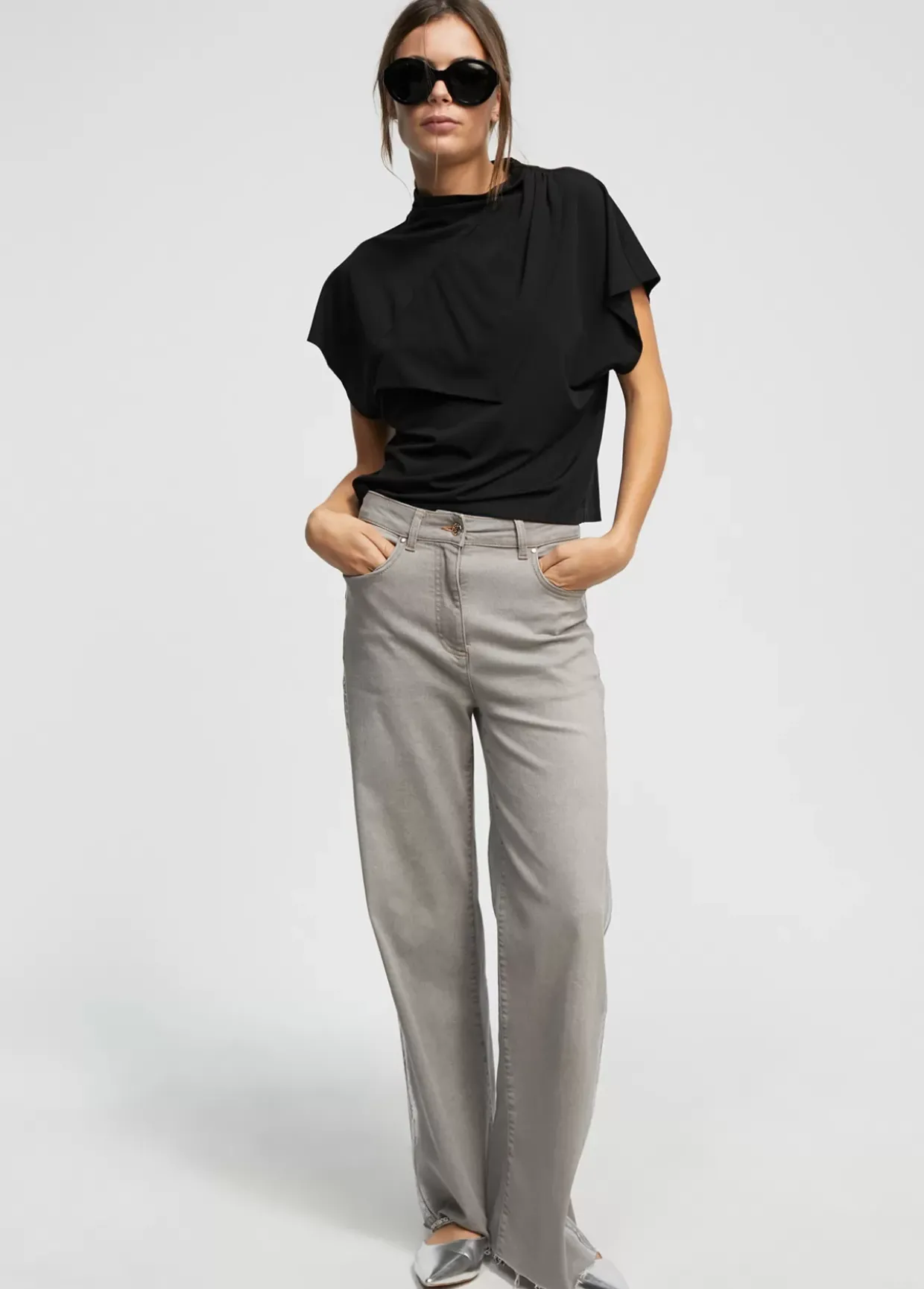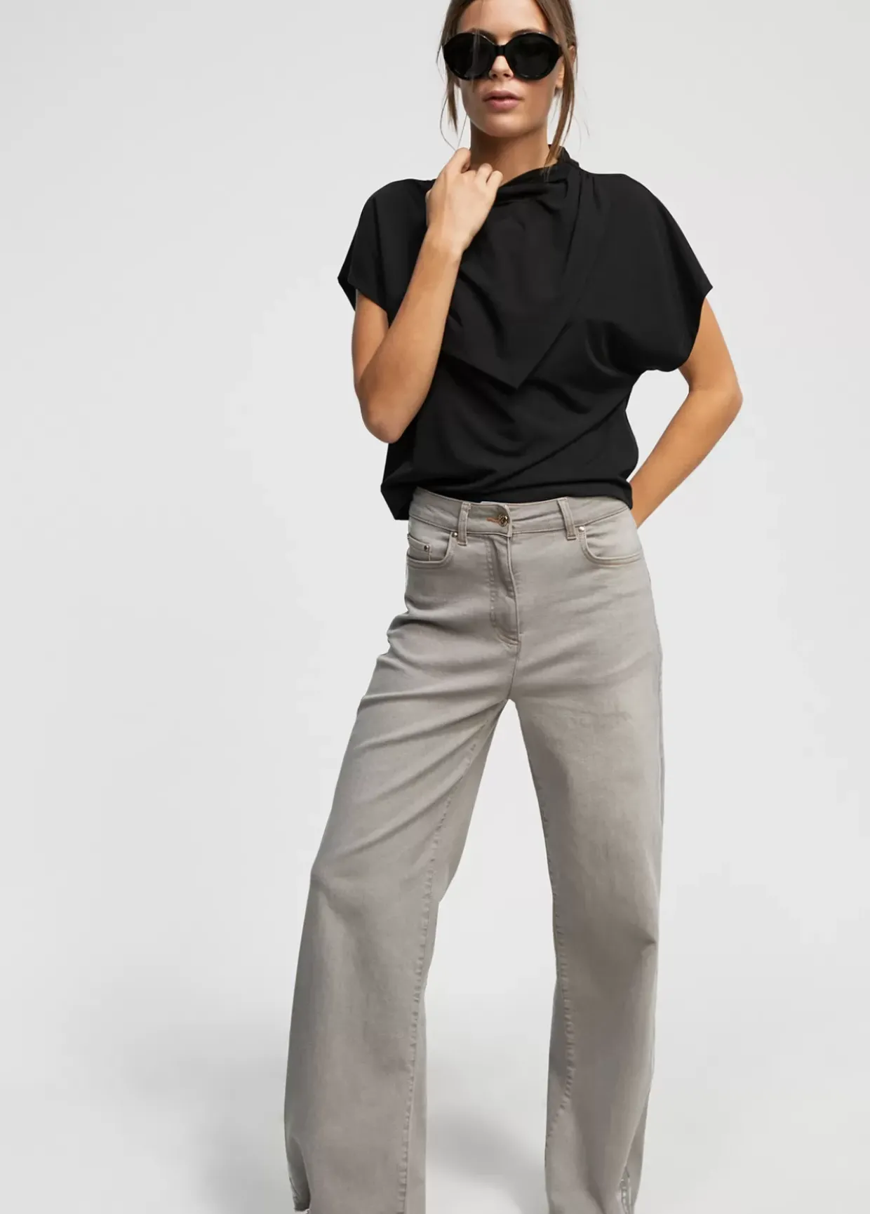Camiseta cuello perkins. Manga caída y frontal tipo pañuelo.
