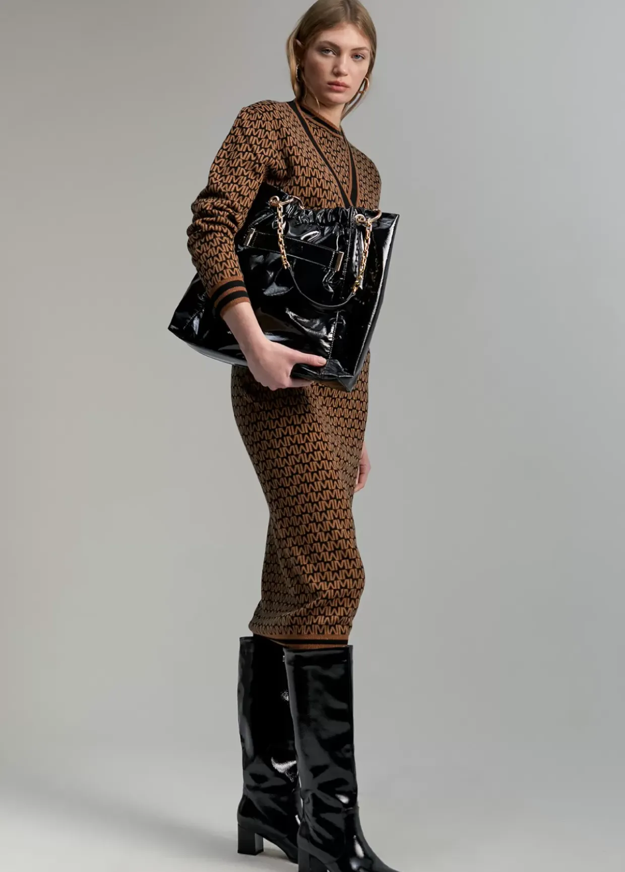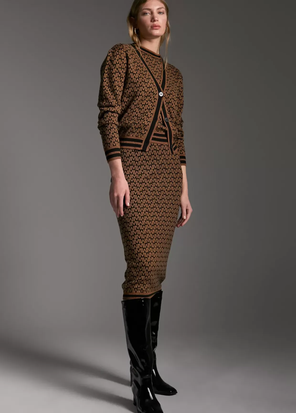 Cárdigan corto estampado monograma bicolor. Detalle en color contrastado en rib frontal, puños y bajo. Cerrado con botones.