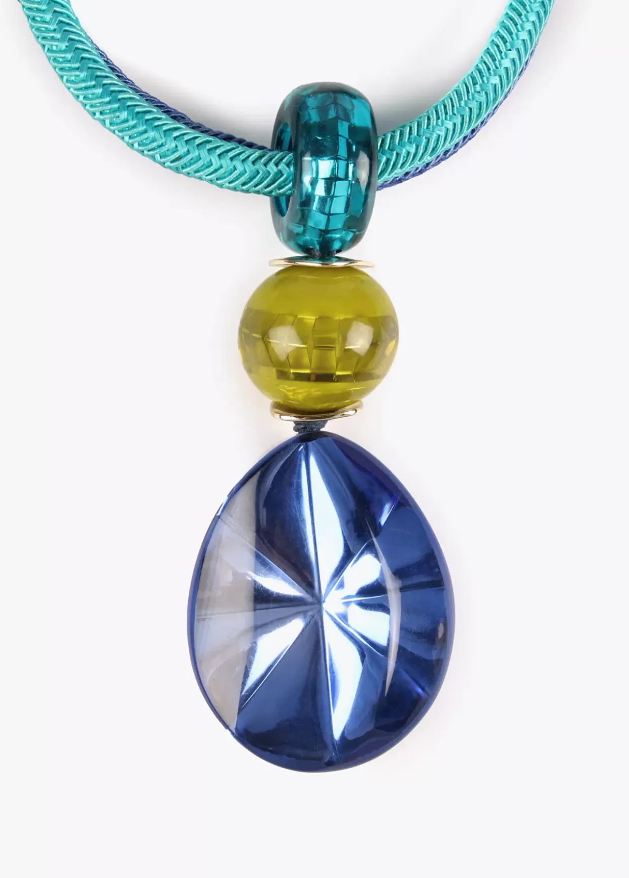 Collar con colgante de maxi piezas de diferentes colores. Cierre ajustable y medallita logotipada.