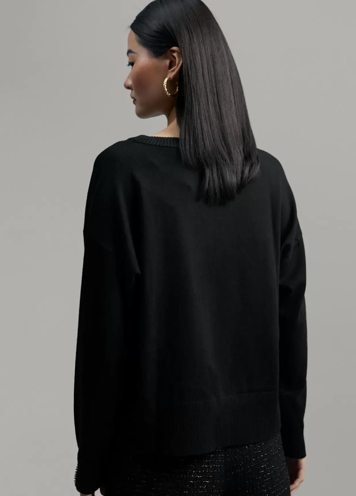 Jersey de punto y manga larga. Detalle en brillantes tipo joya en ambos lados del bajo y en puños.