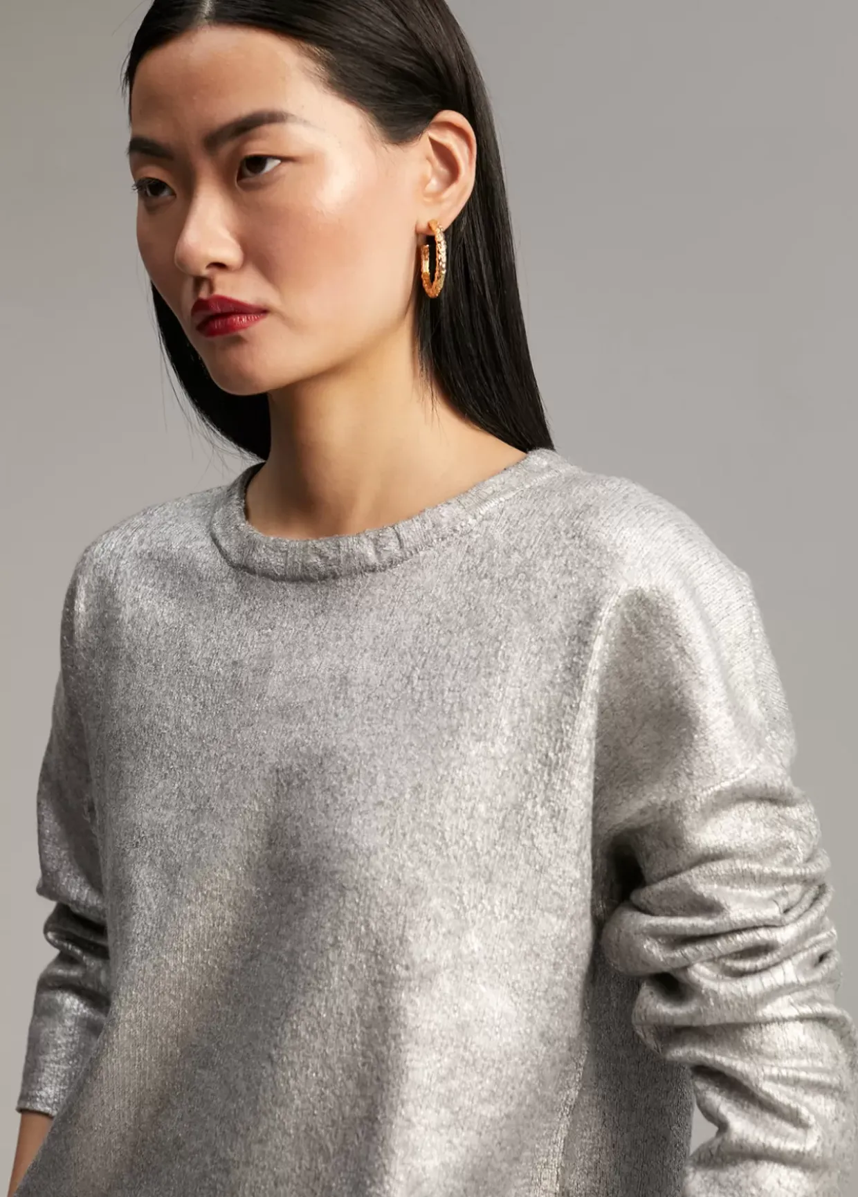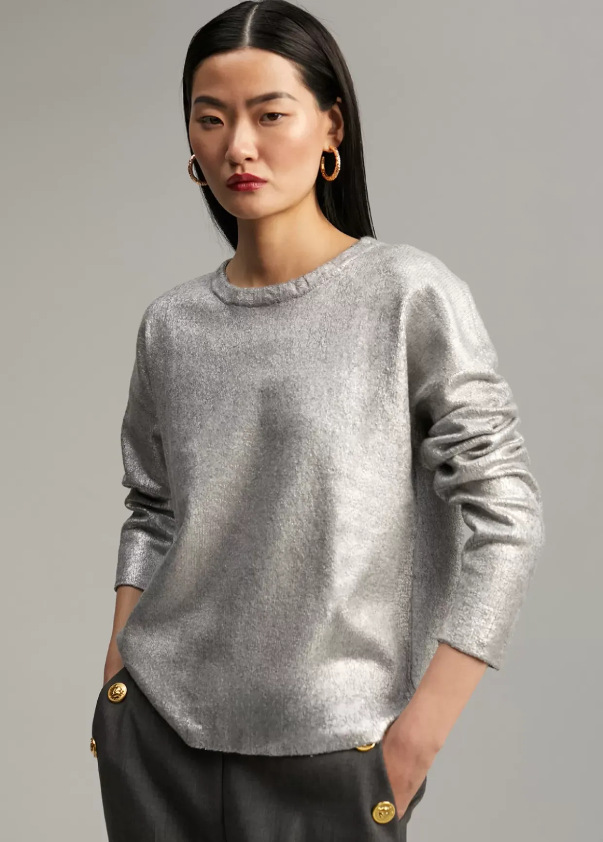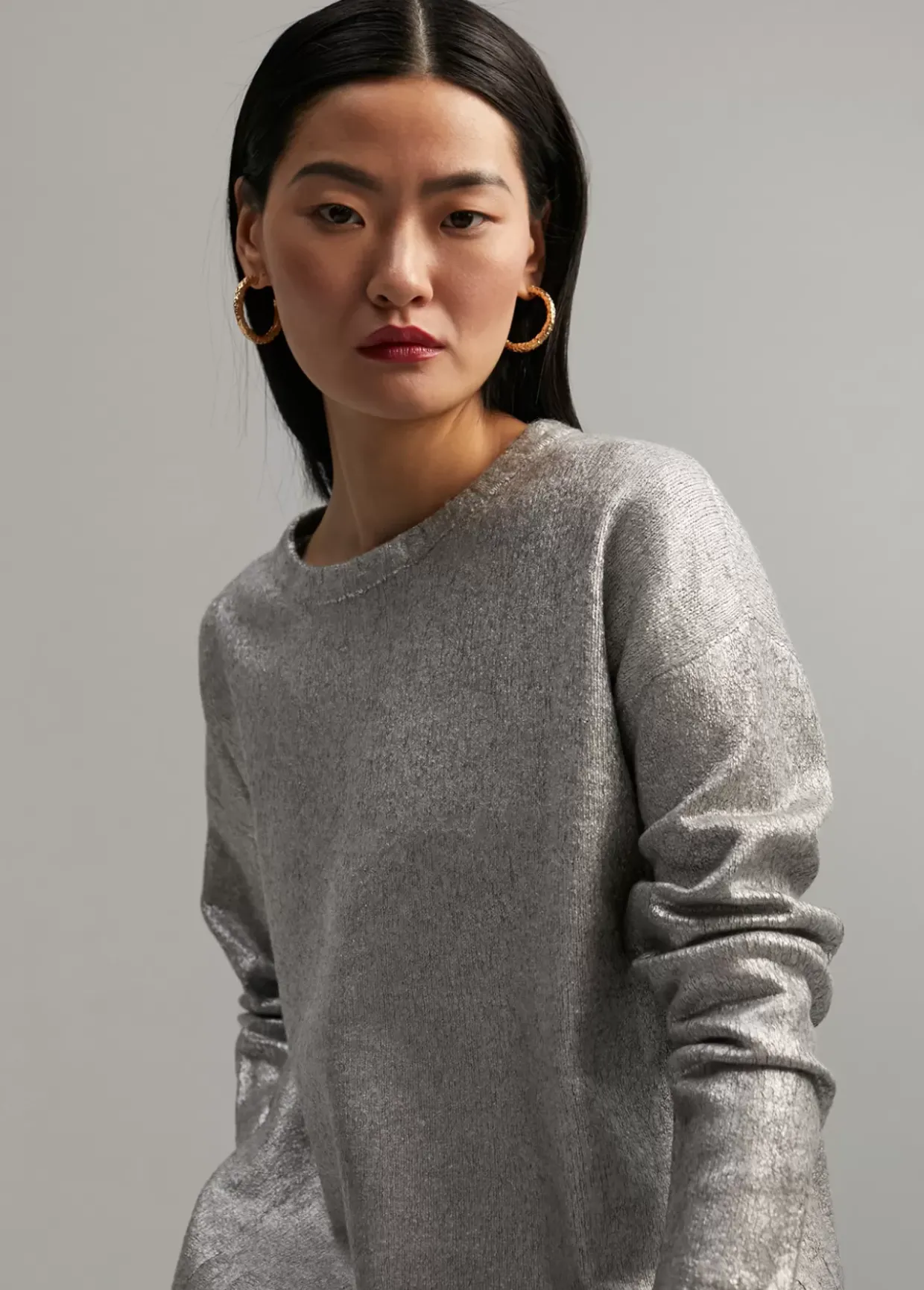Jersey de punto laminado. Cuello caja y manga larga.