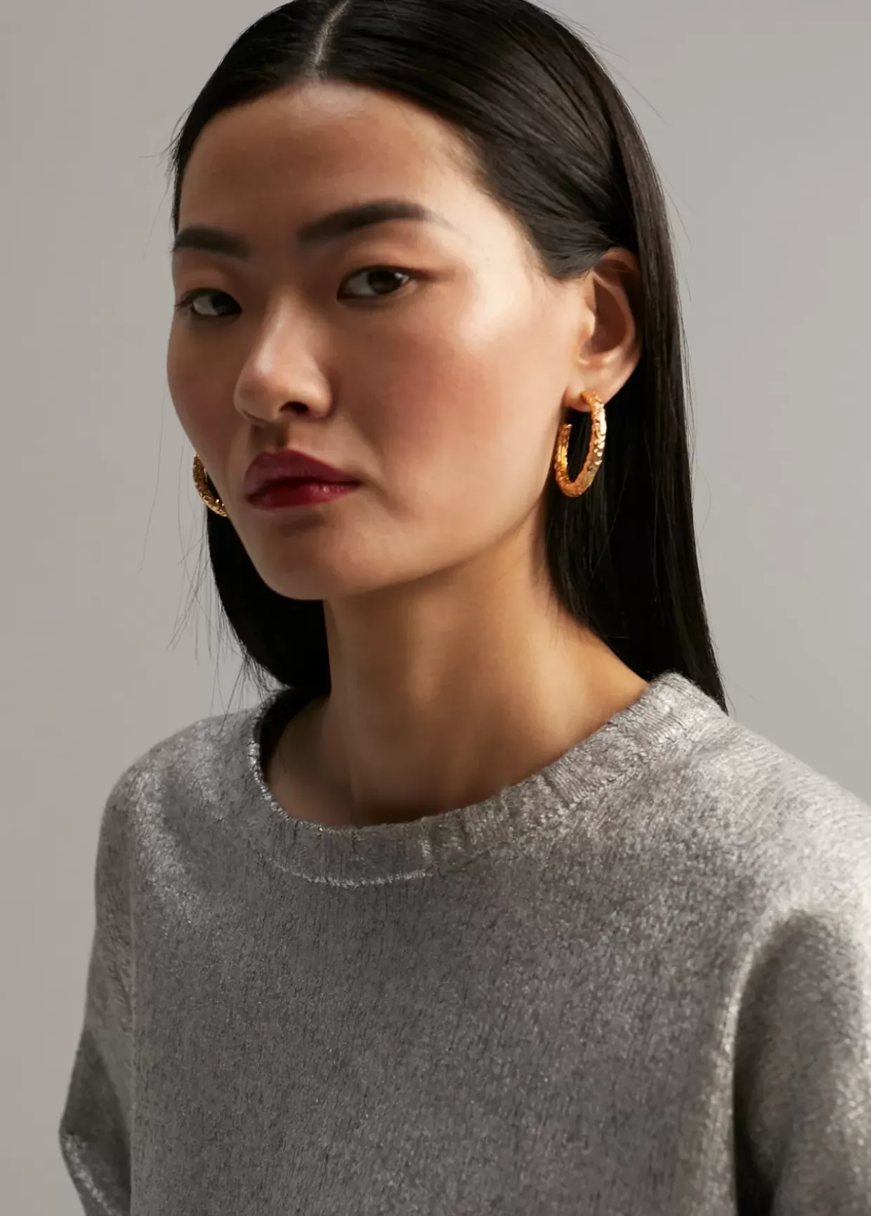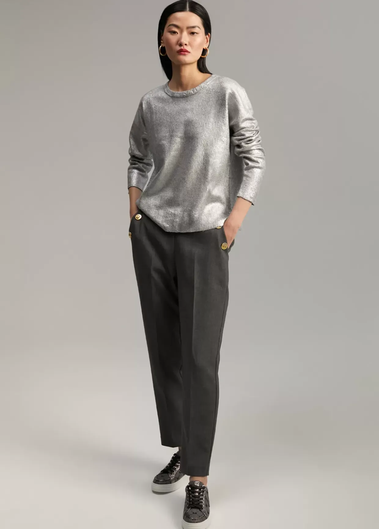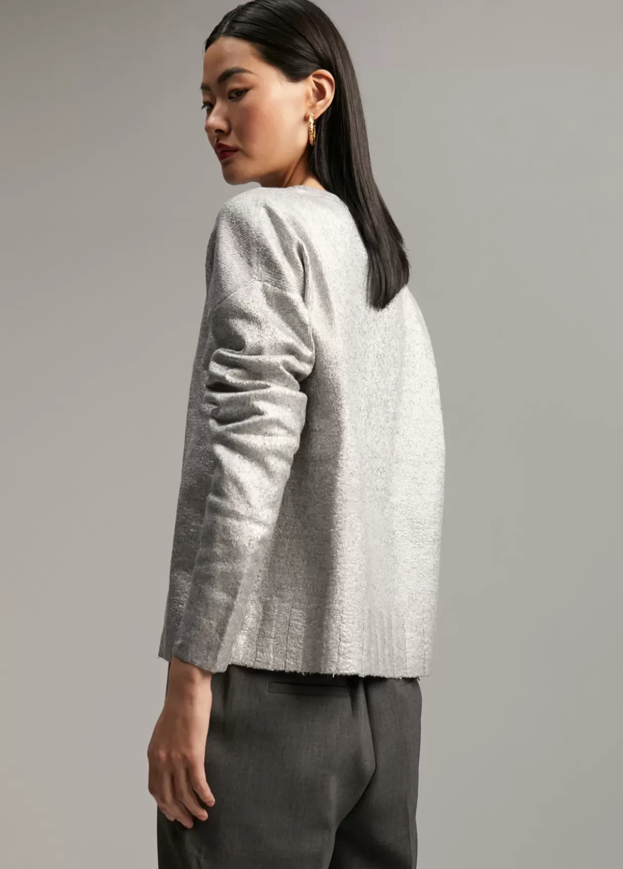 Jersey de punto laminado. Cuello caja y manga larga.