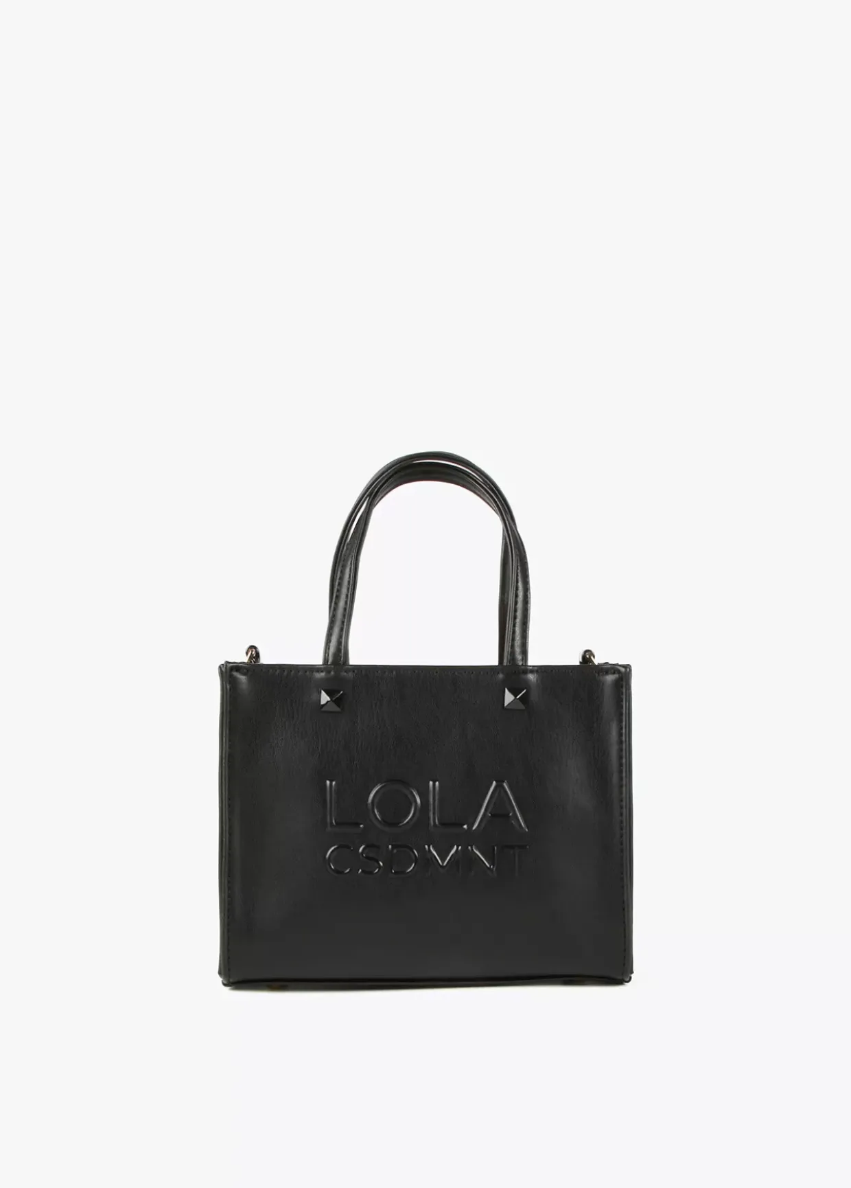 Bolso mini shopper en efecto piel y logo en relieve en parte frontal. Asas de mano y asa bandolera regulable y extraíble. Cierre de cremallera.