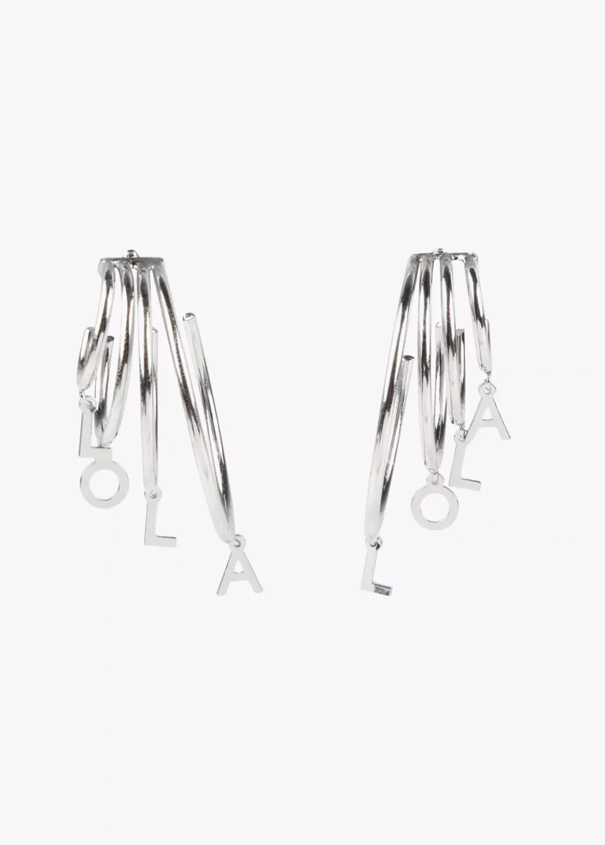 Pendientes multi aro de medidas escaladas y letras Lola como colgantes.