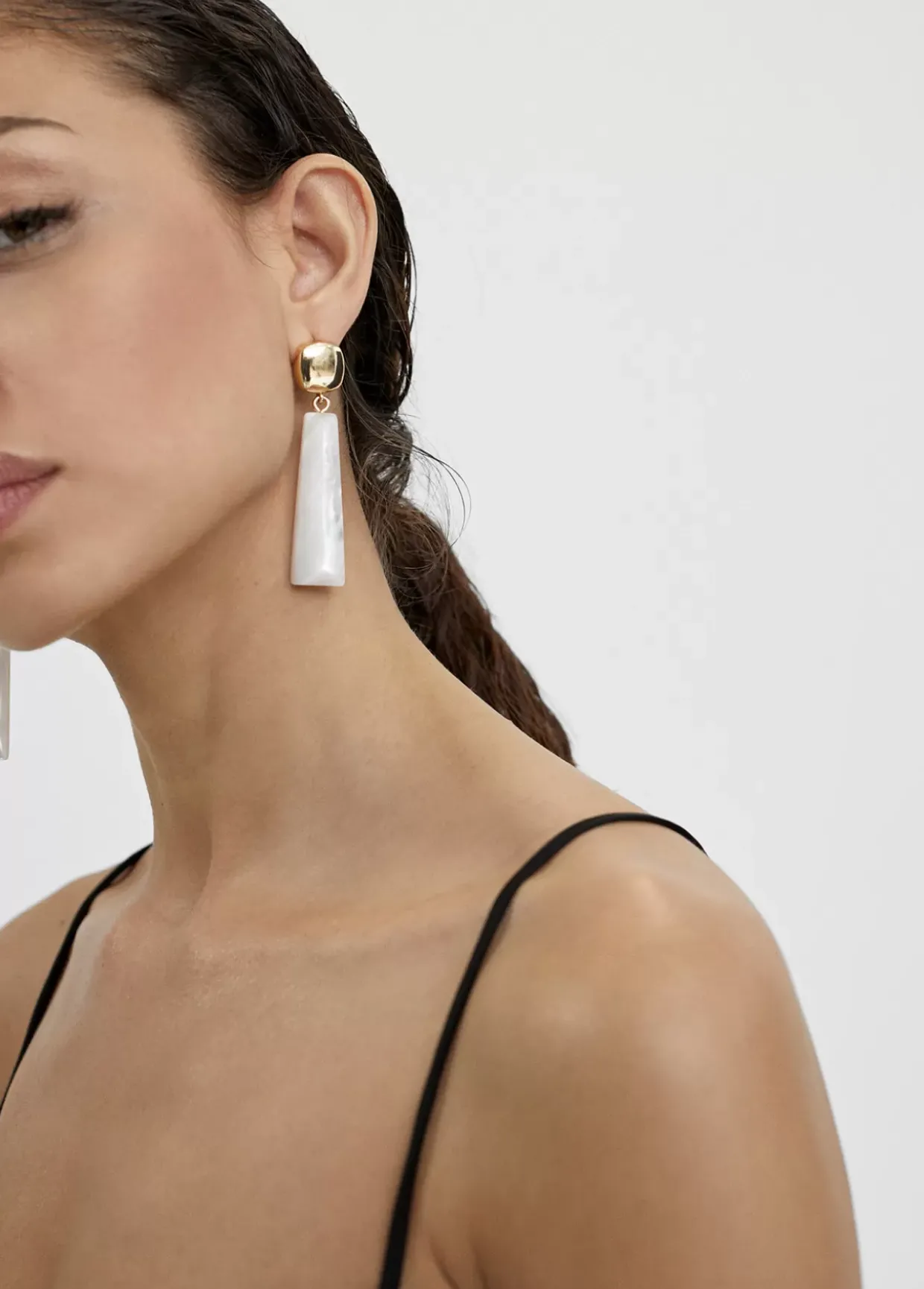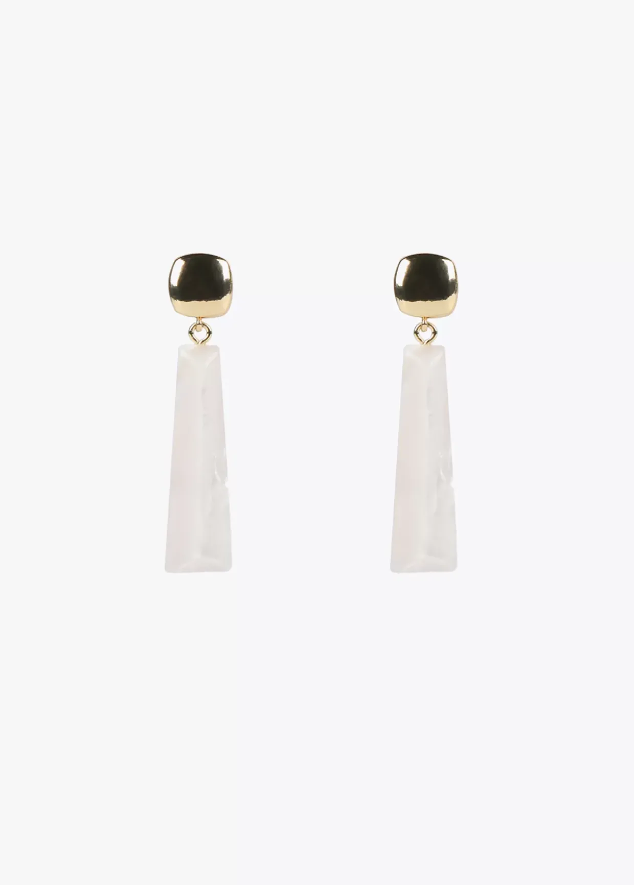 Pendientes dos piezas tipo tecla piano en color blanco y detalles dorados.