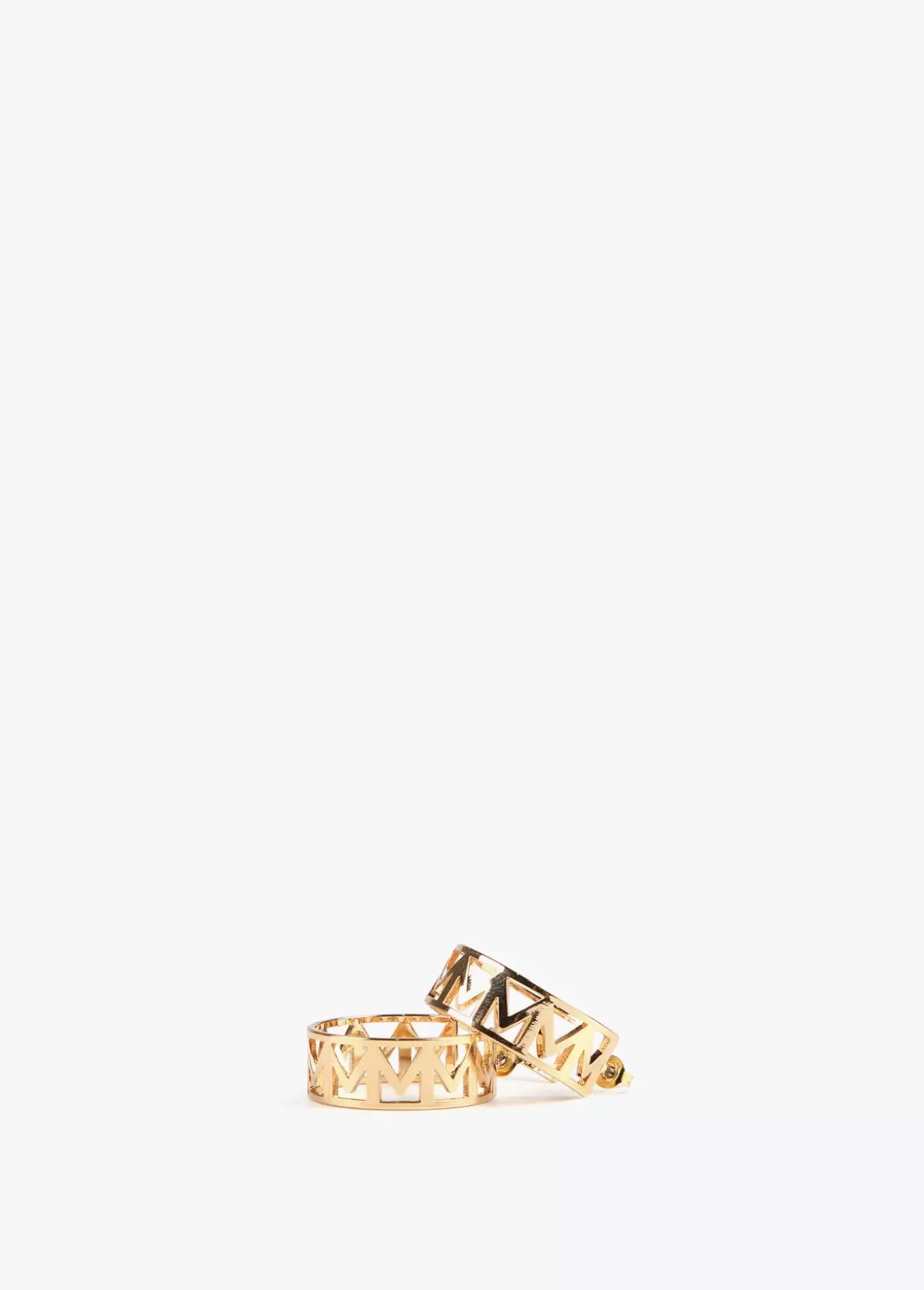 Pendientes dorados de aro abiertos con letras en el interior.