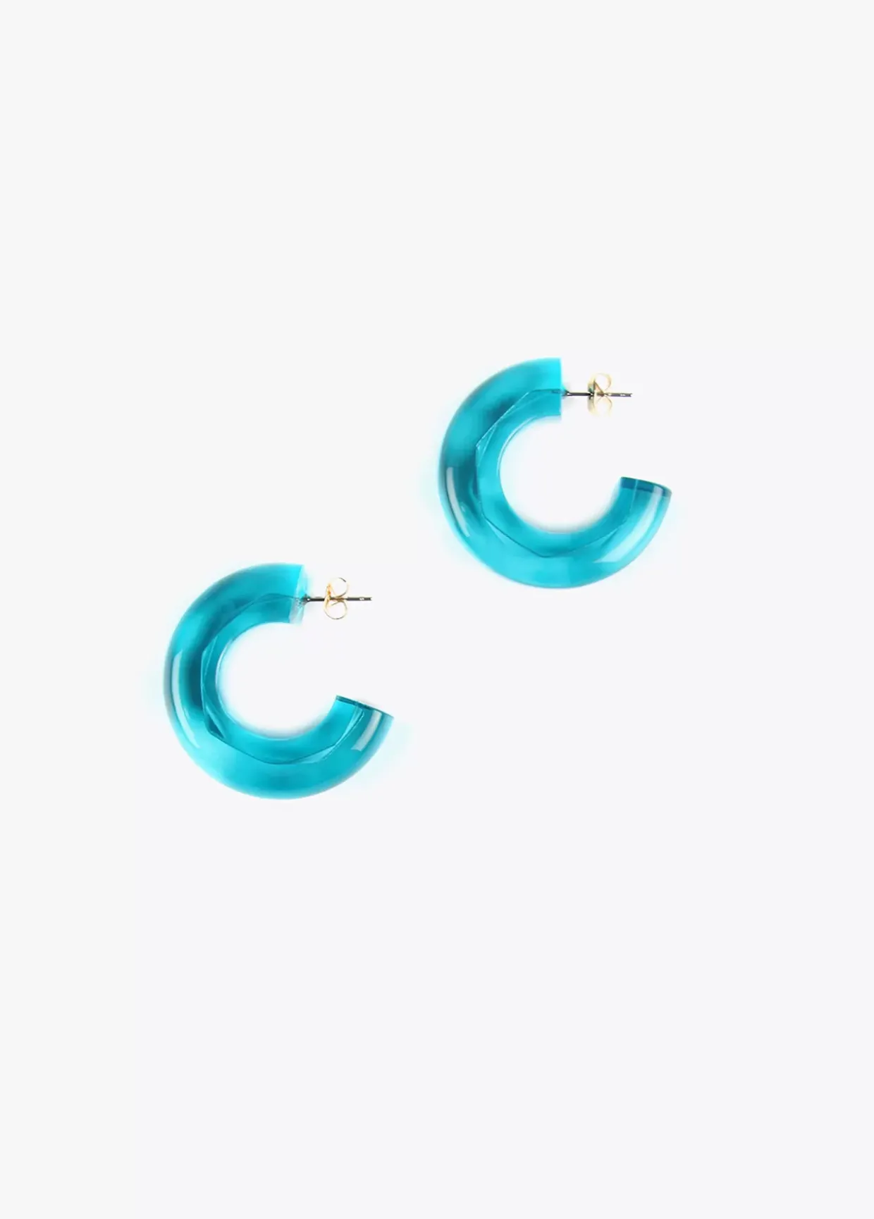 Pendientes acrílicos de aro grueso en diferentes colores.