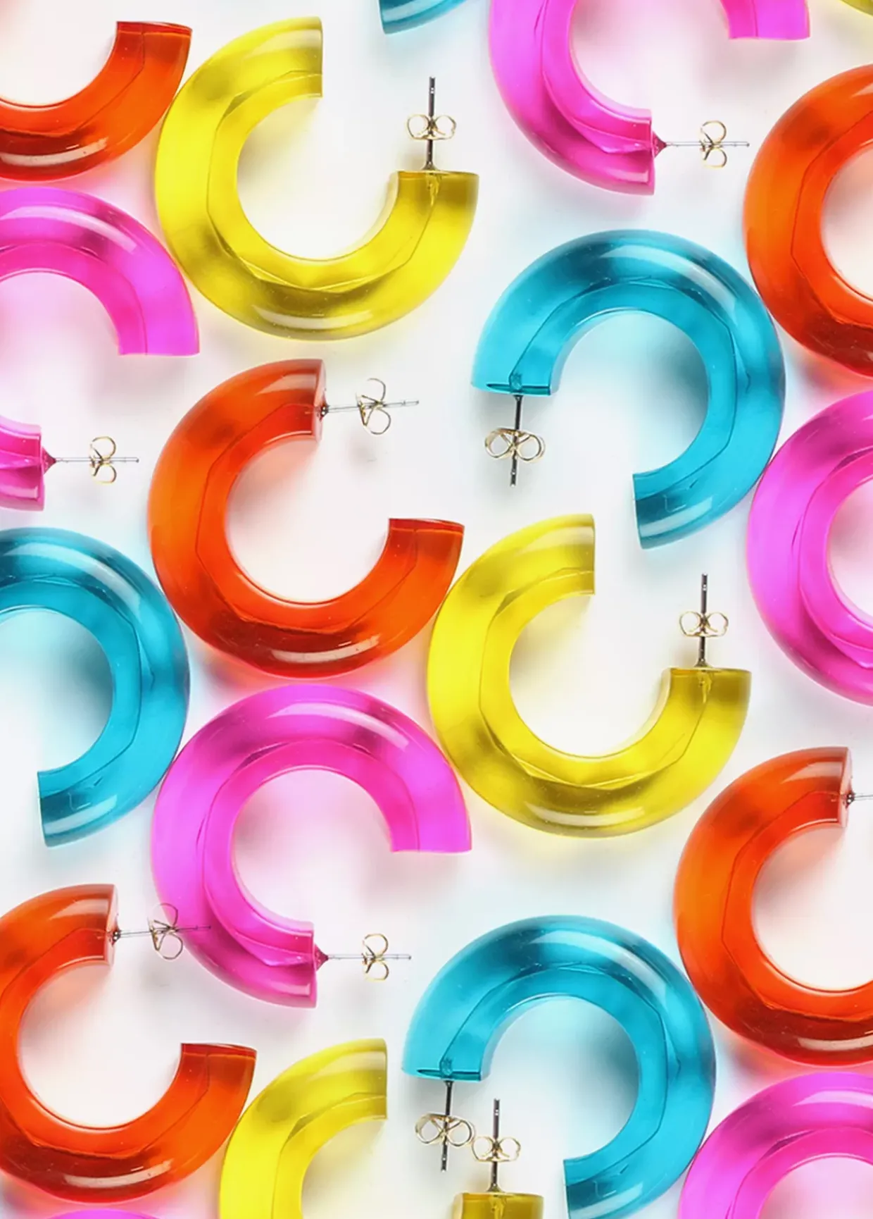 Pendientes acrílicos de aro grueso en diferentes colores.