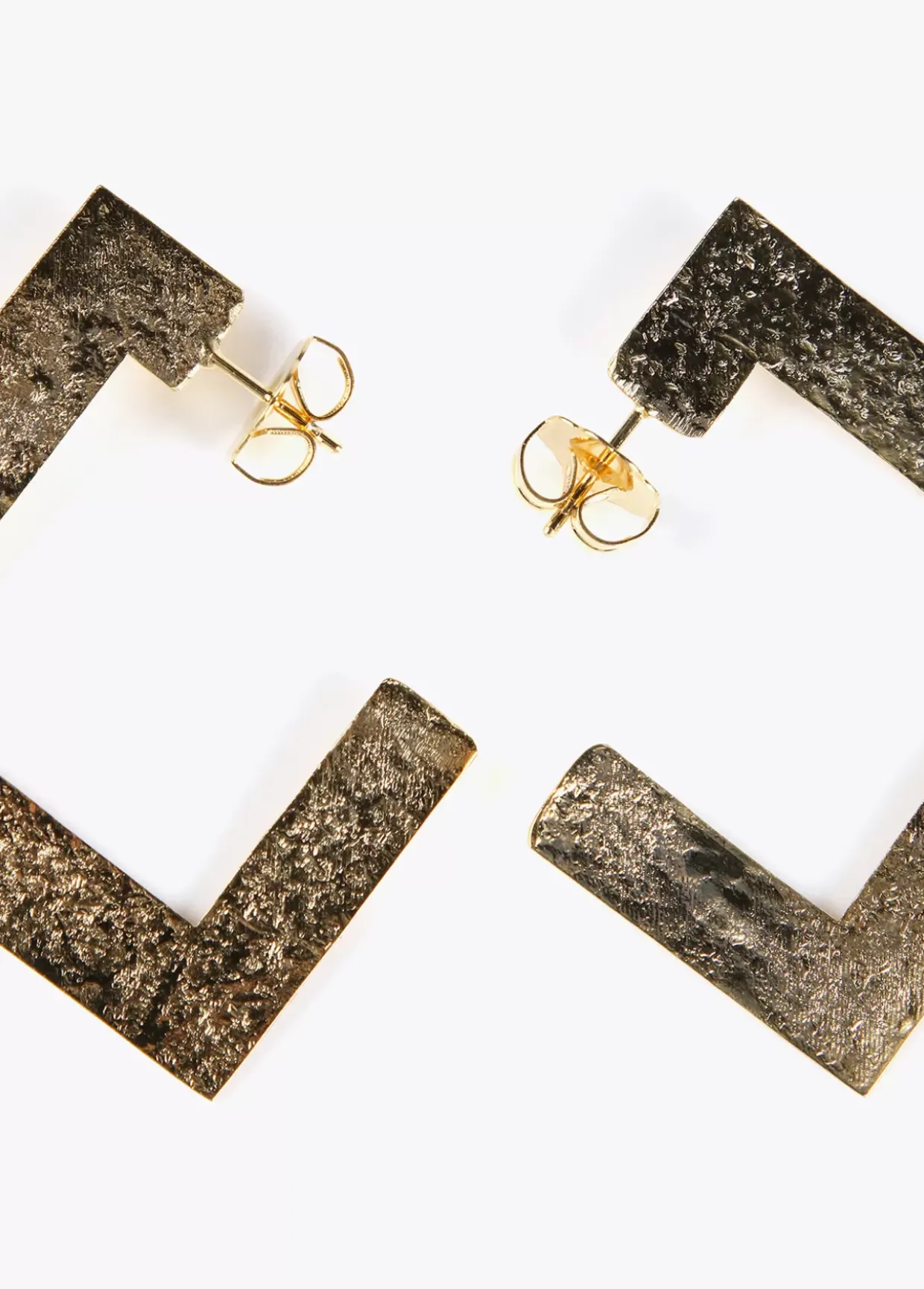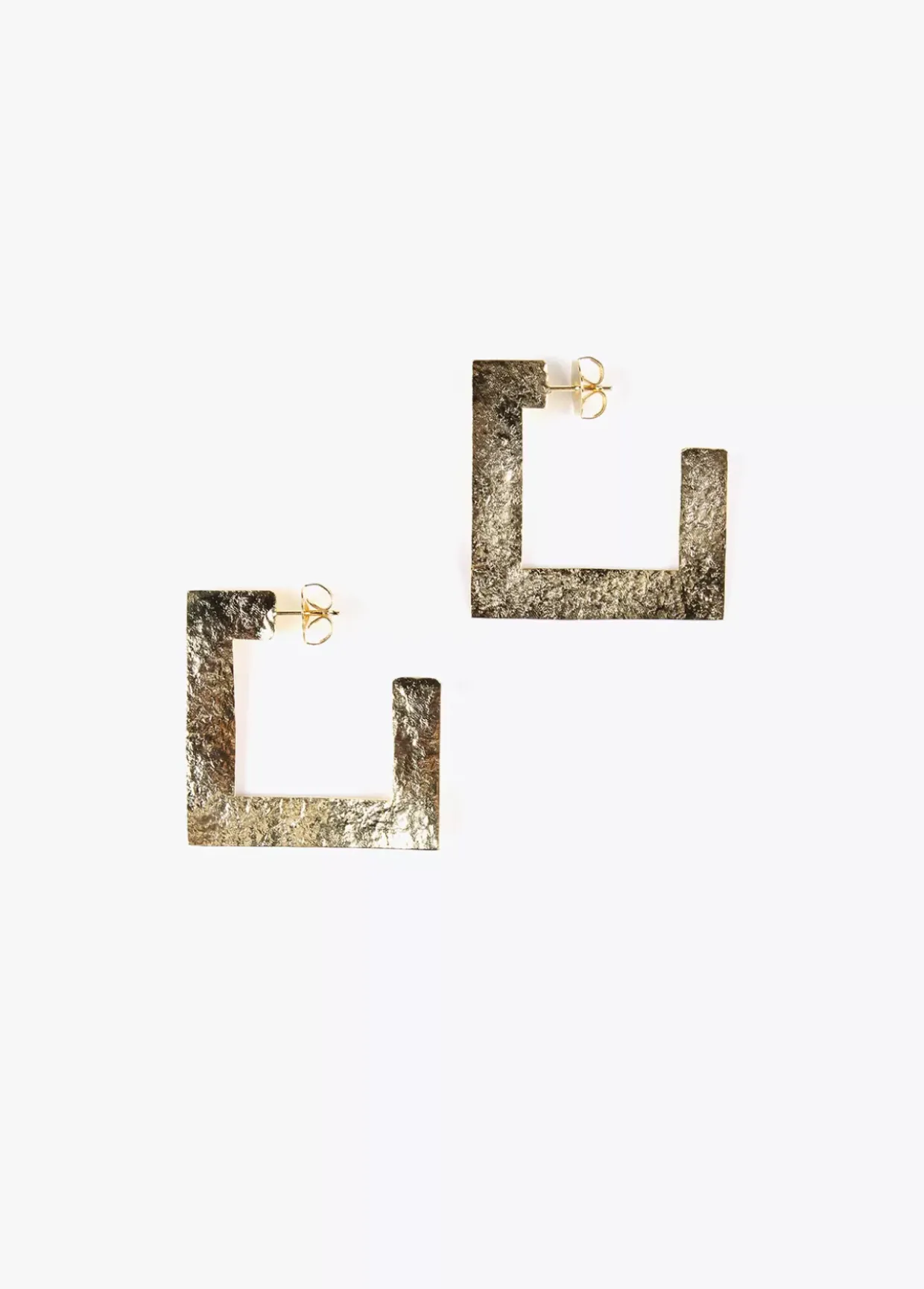 Pendientes dorados de aro cuadrado plano, grabado y abierto.