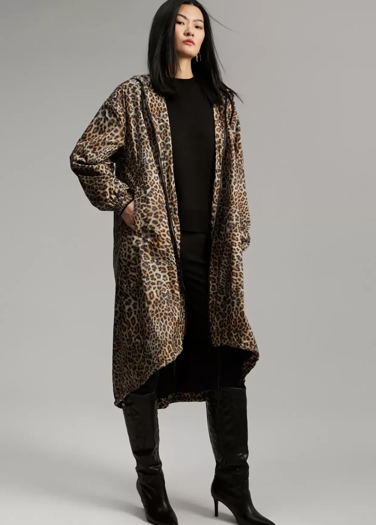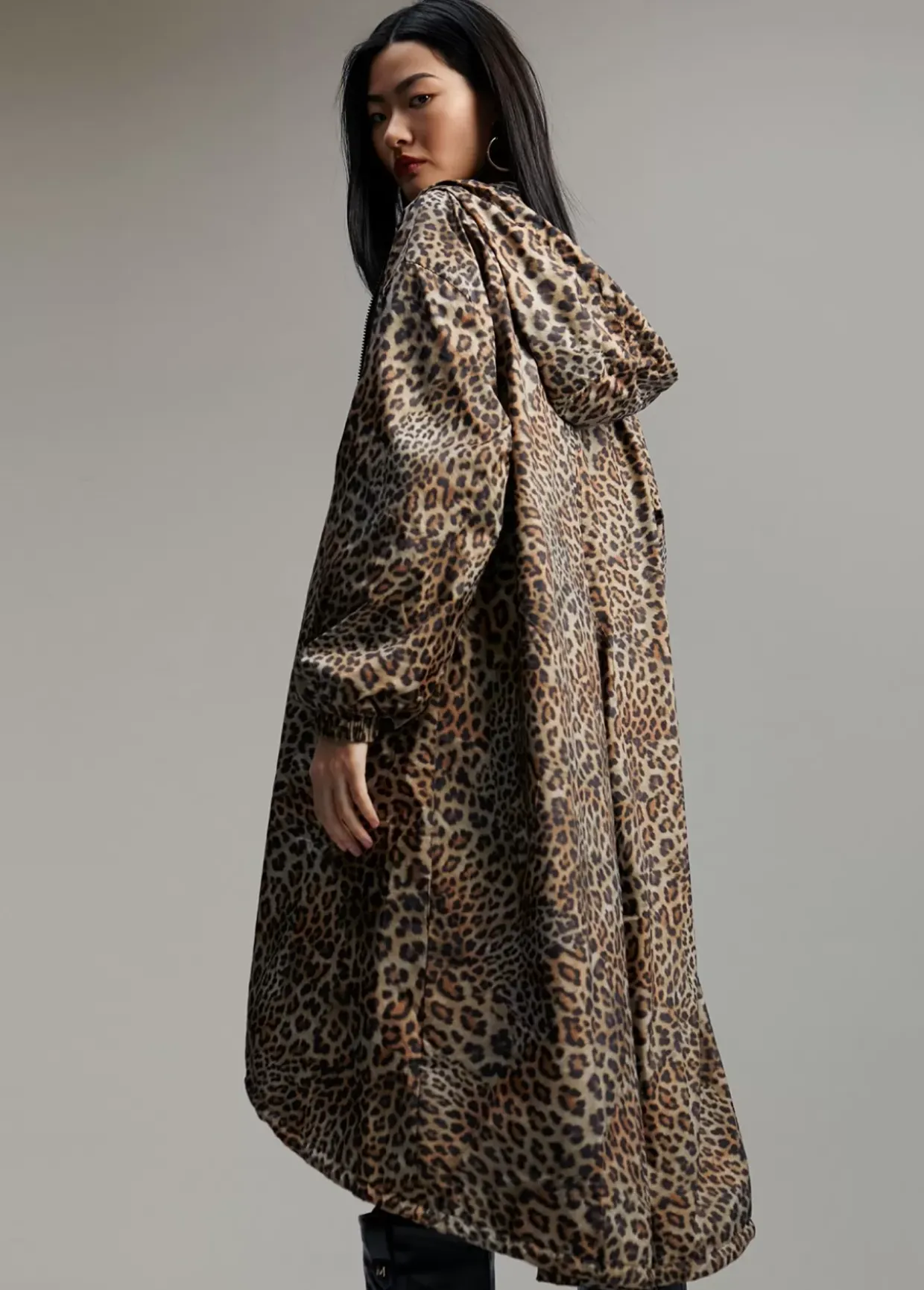 Raincoat con capucha estampado animal print. Puños elásticos. Bajo ajustable. Cerrado con cremallera frontal y bolsillos laterales.