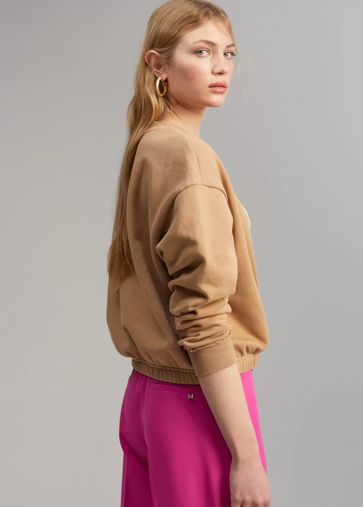 Sudadera en color camel con tigre bordado en parte frontal. Cuello caja y bajo elástico.