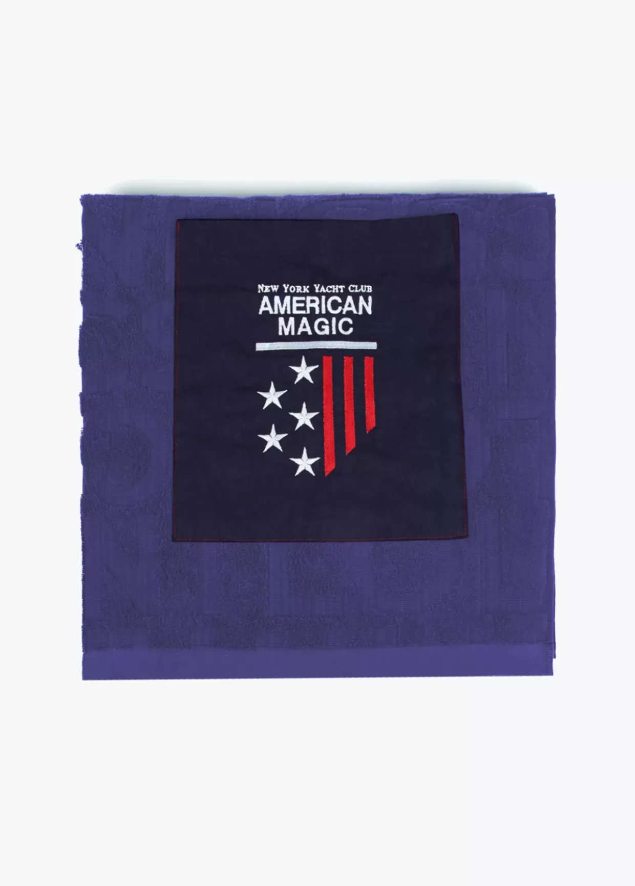 Toalla de algodón de rizo con diseño de escudo Copa América en delantero. Parte trasera lisa.