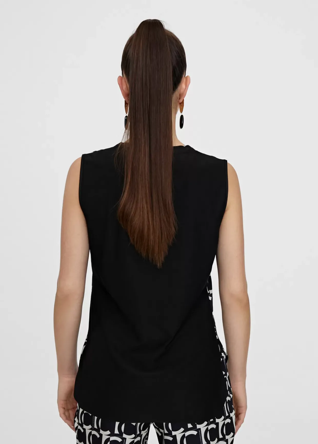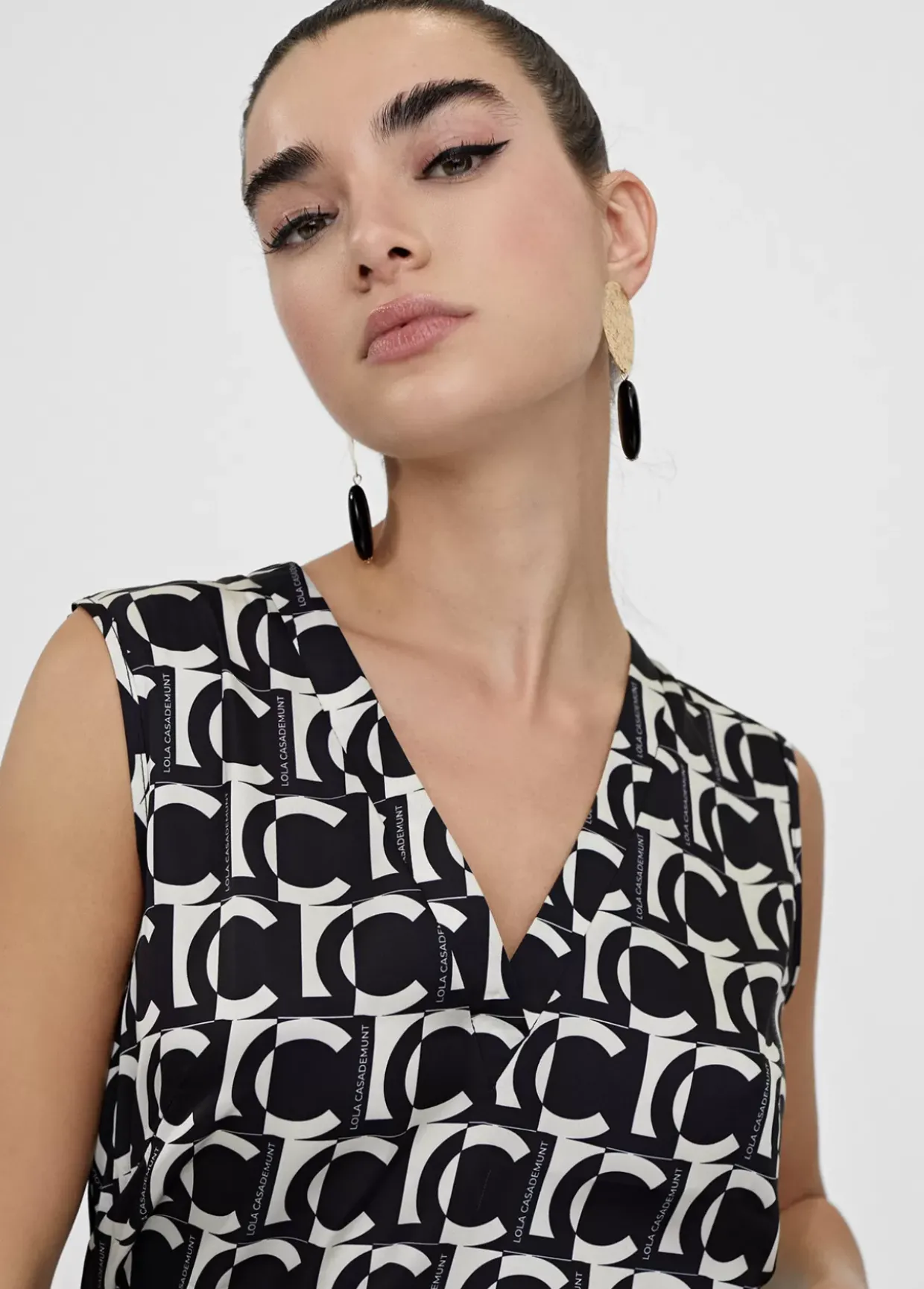 Top fluido monograma LC bicolor. Escote pico y manga sisa.