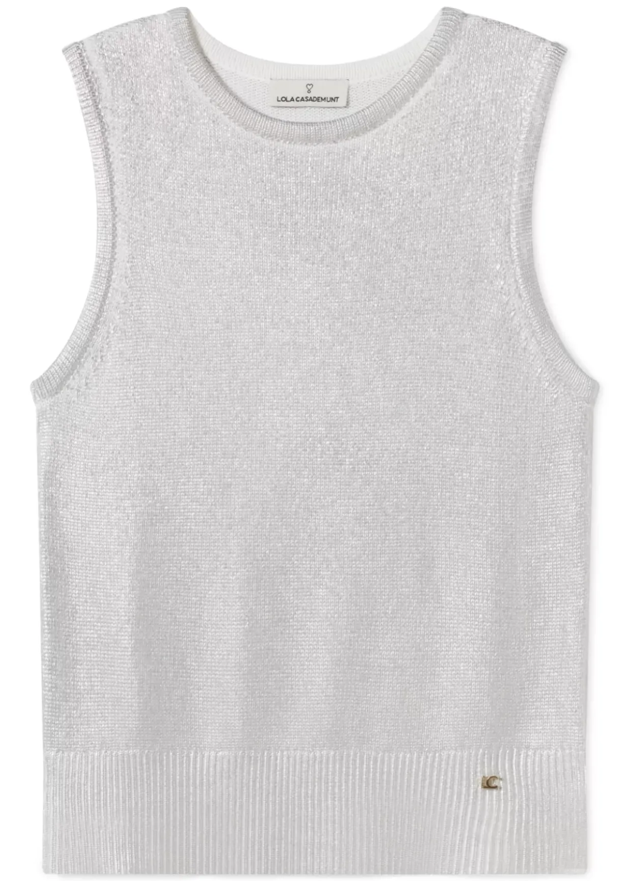Top de punto sin mangas y cuello caja. Efecto laminado.