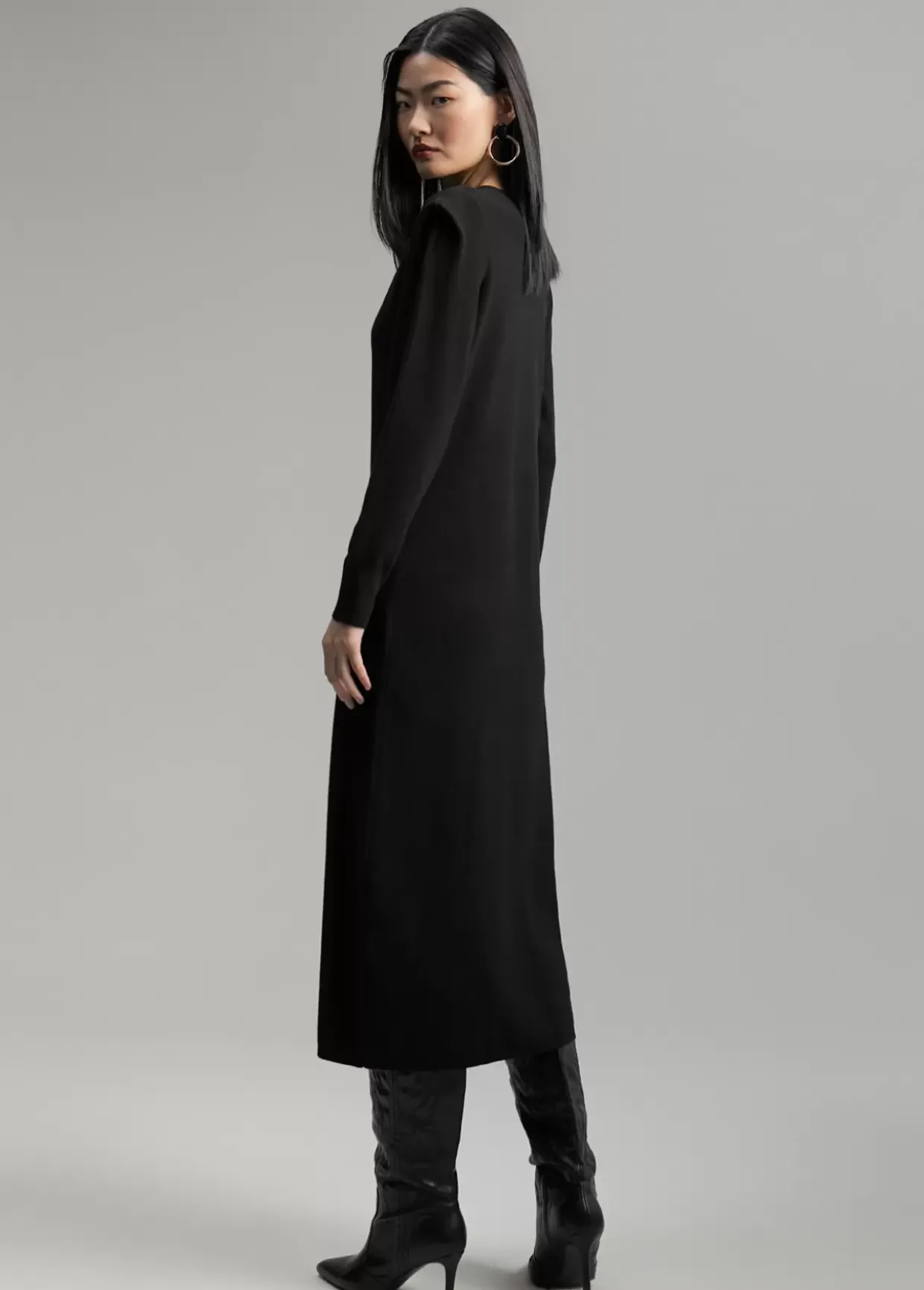 Vestido de punto de largo midi con hombreras. Escote pico.