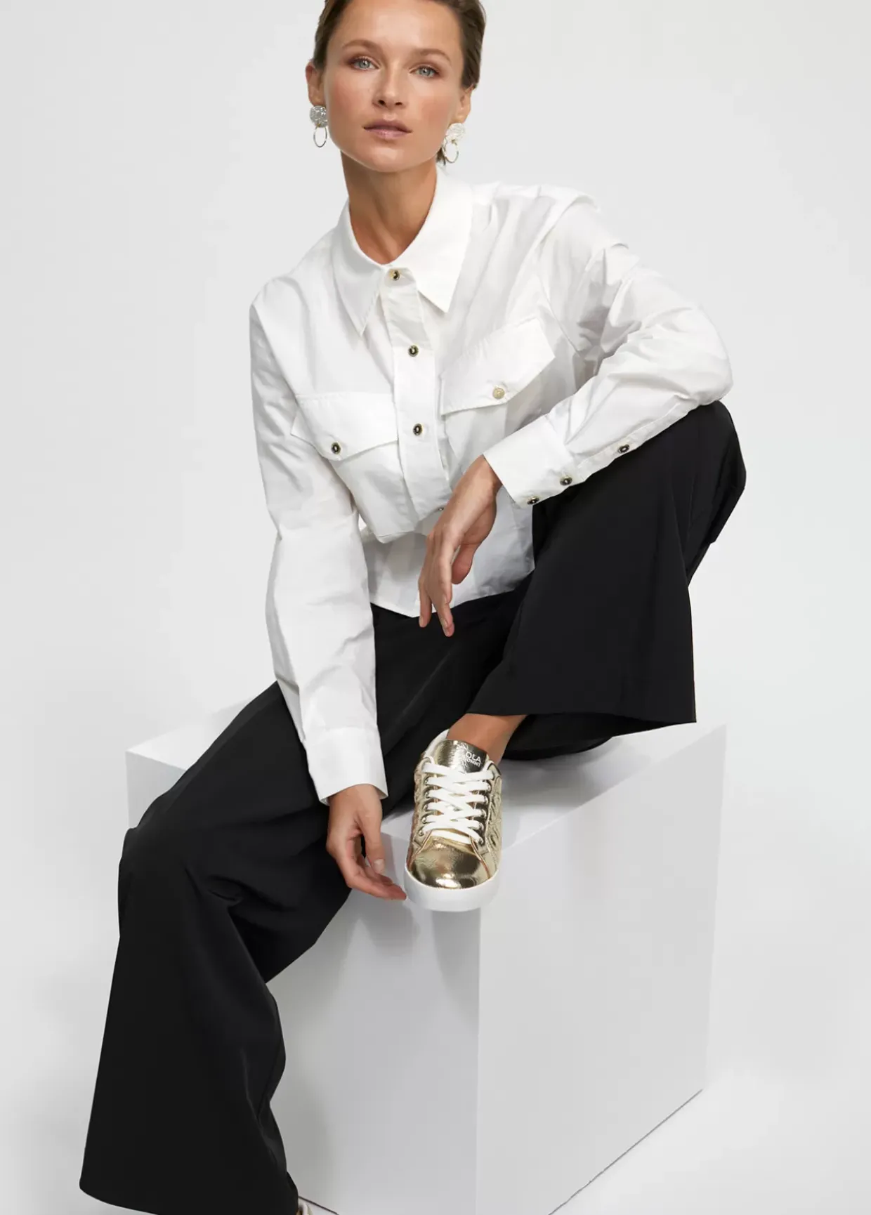 Zapatillas deportivas metalizadas con logro bordado en laterales. Lengüeta, parte trasera y plantillas logotipadas.