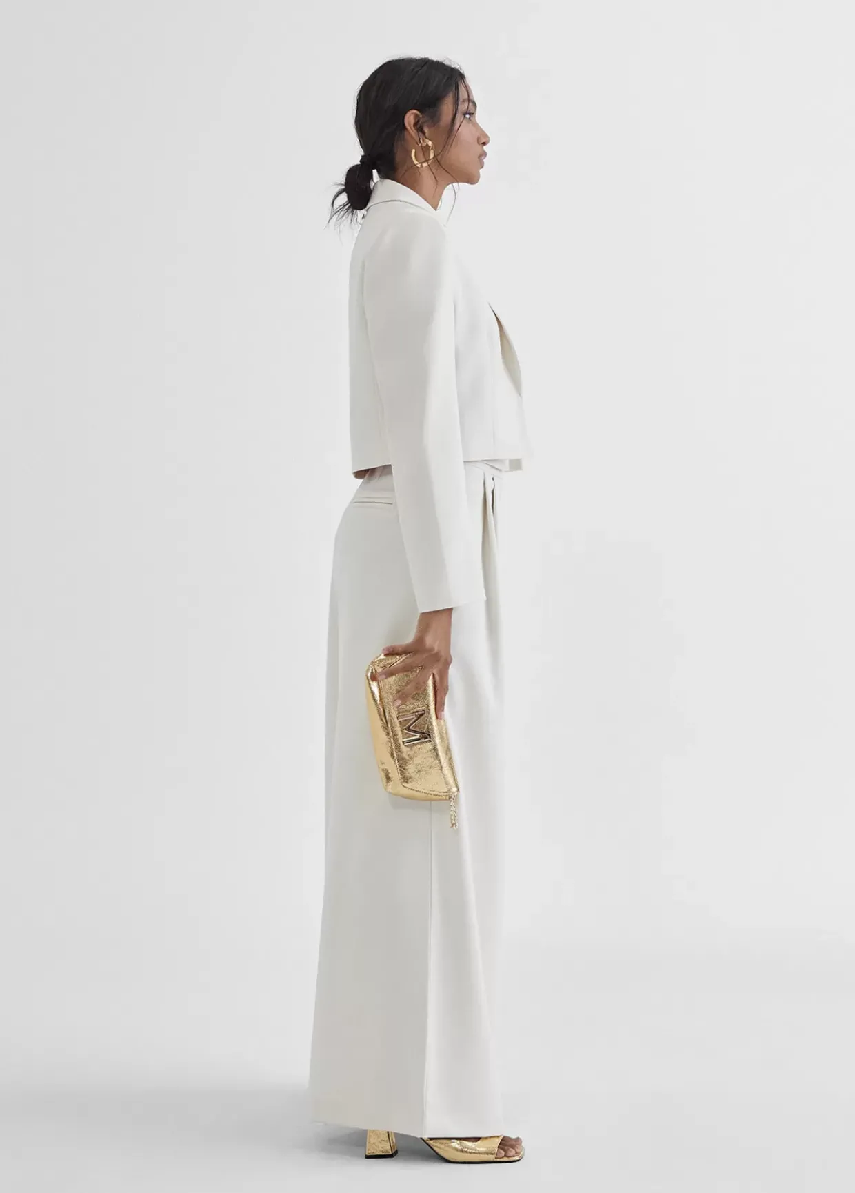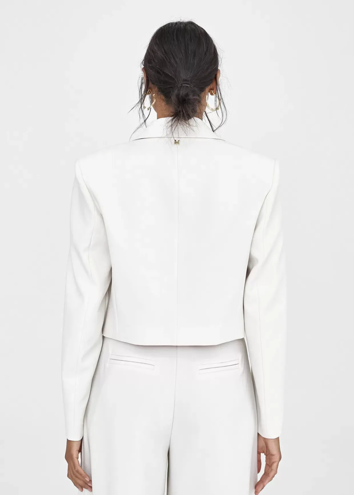 Americana cropped mono color. Cuello solapa y sin botones. Forro logotipado a contraste.