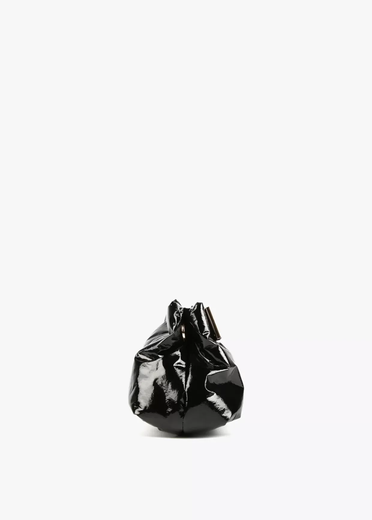 Bolso tipo bandolera efecto charol brillante con asa bandolera de cadena extraíble y cinta logotipada en parte frontal. Cierre con botón imantado y bolsillo interior.