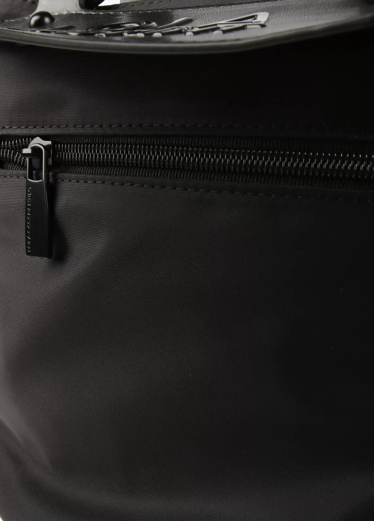Bolso tipo bandolera en efecto piel y nylon combinada. Bolsillo en parte trasera y cierre central con cremallera. Asas de mano y asa bandolera logotipada.