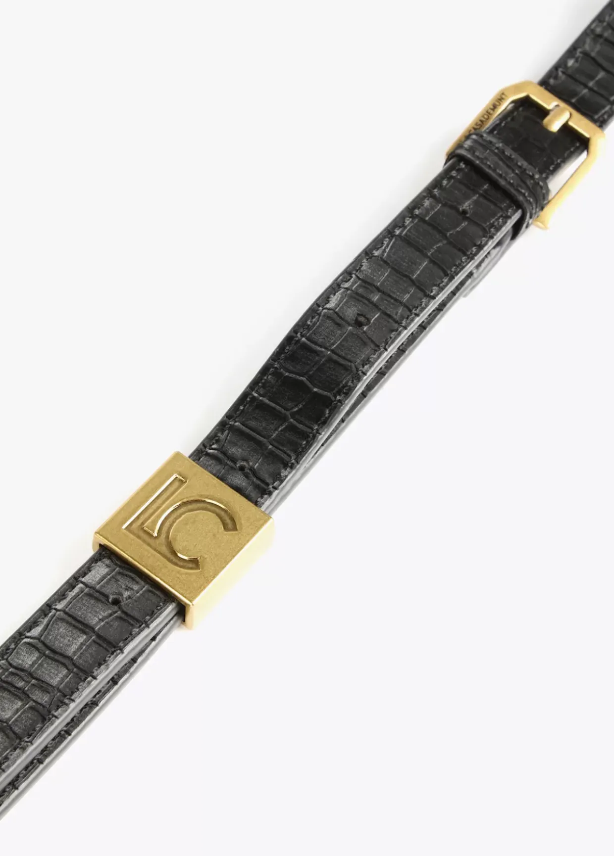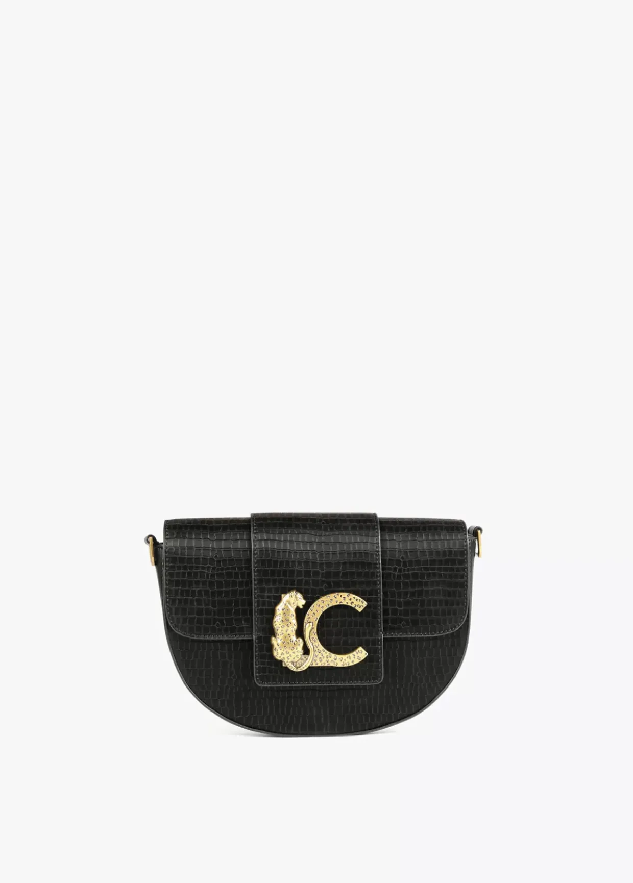 Bolso tipo bandolera en efecto piel cocodrilo. Cierre con botón imantado en solapa y maxi logo con animal dorado en zona frontal. Asa bandolera ajustable y extraíble.