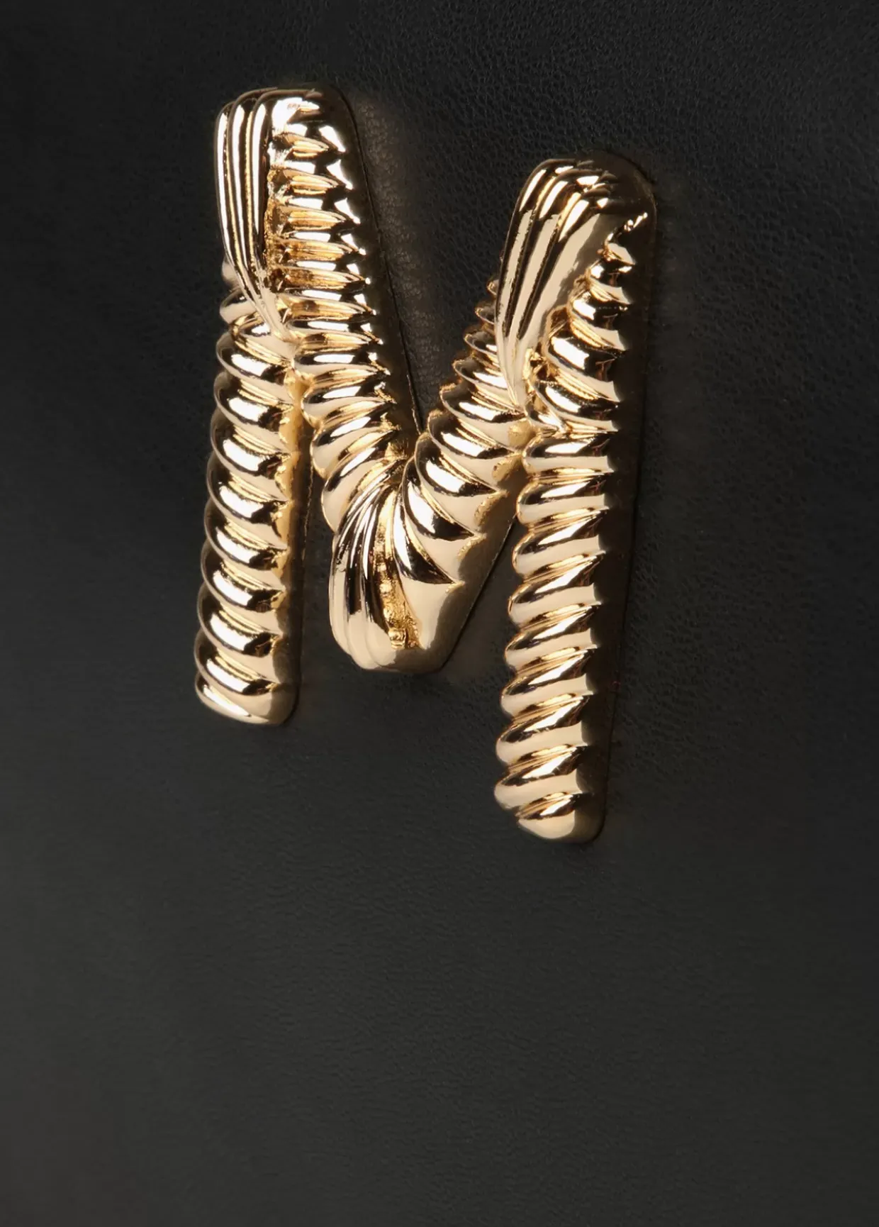 Bolso bandolera rectangular con asa de cadena extraíble. Cierre con botones imantados y detalle letra logo dorada en parte frontal.