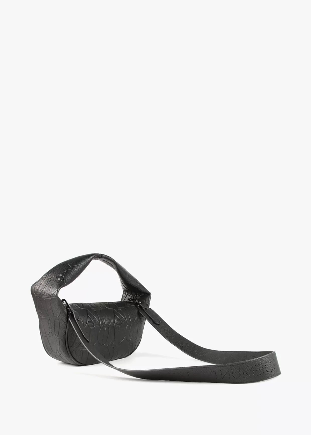 Bolso bandolera en efecto piel grabado, logo en parte frontal y cierre de cremallera. Asa de mano y asa bandolera ajustable y extraíble.