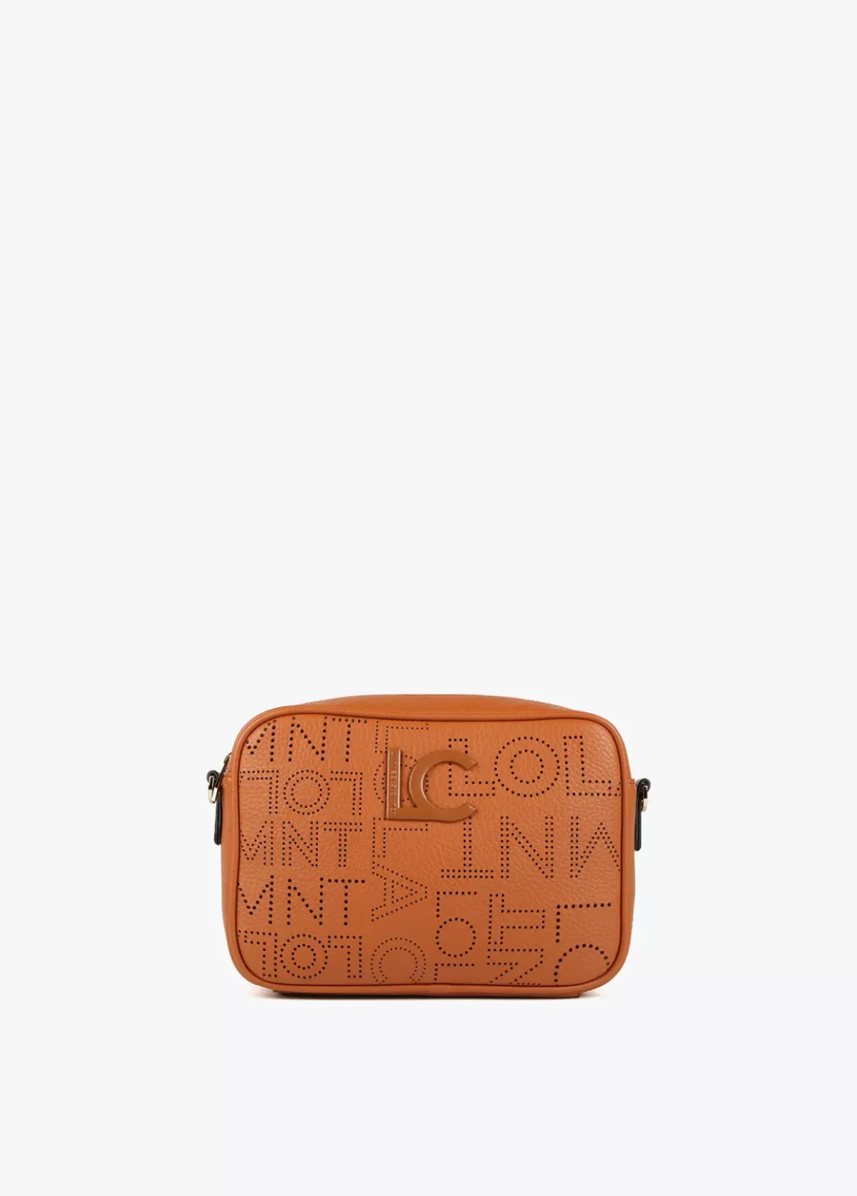 Bolso tipo bandolera con logotipo troquelado y logo lacado al tono en zona frontal. Cierre de cremallera y asa bandolera ajustable y extraíble.
