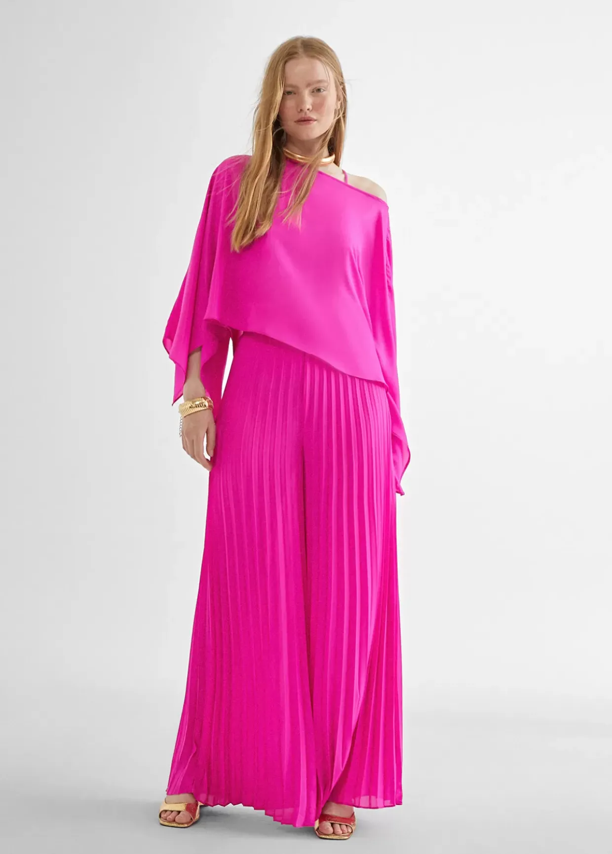Blusa tipo capa satinada con manga ancha . Largo hasta cintura.