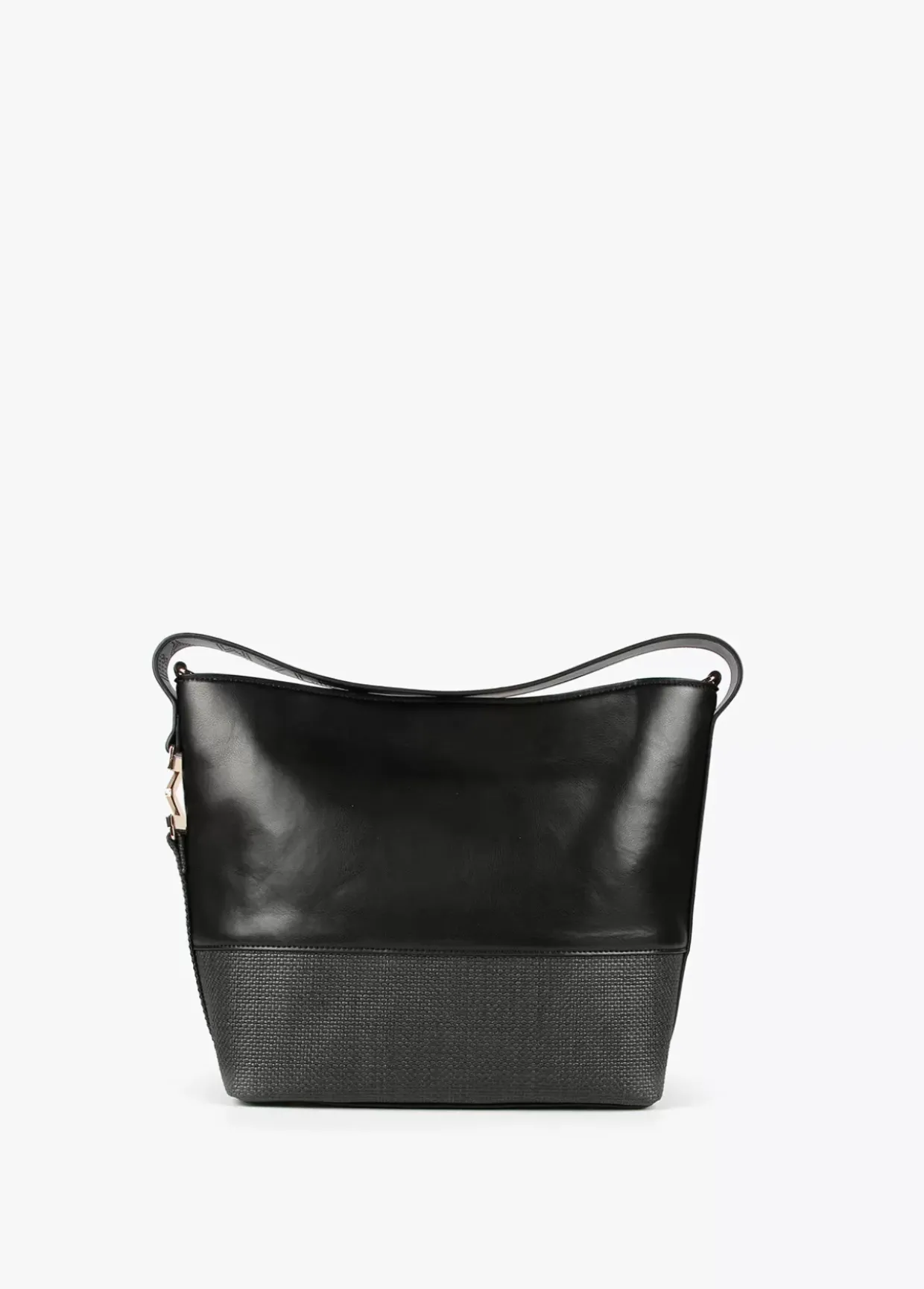 Bolso bandolera en efecto piel y efecto ráfia combinados. Asa de hombro logotipada y detalle letra M dorada en lateral. Asa bandolera ajustable y extraíble y bolsito interior logotipado con cremallera.