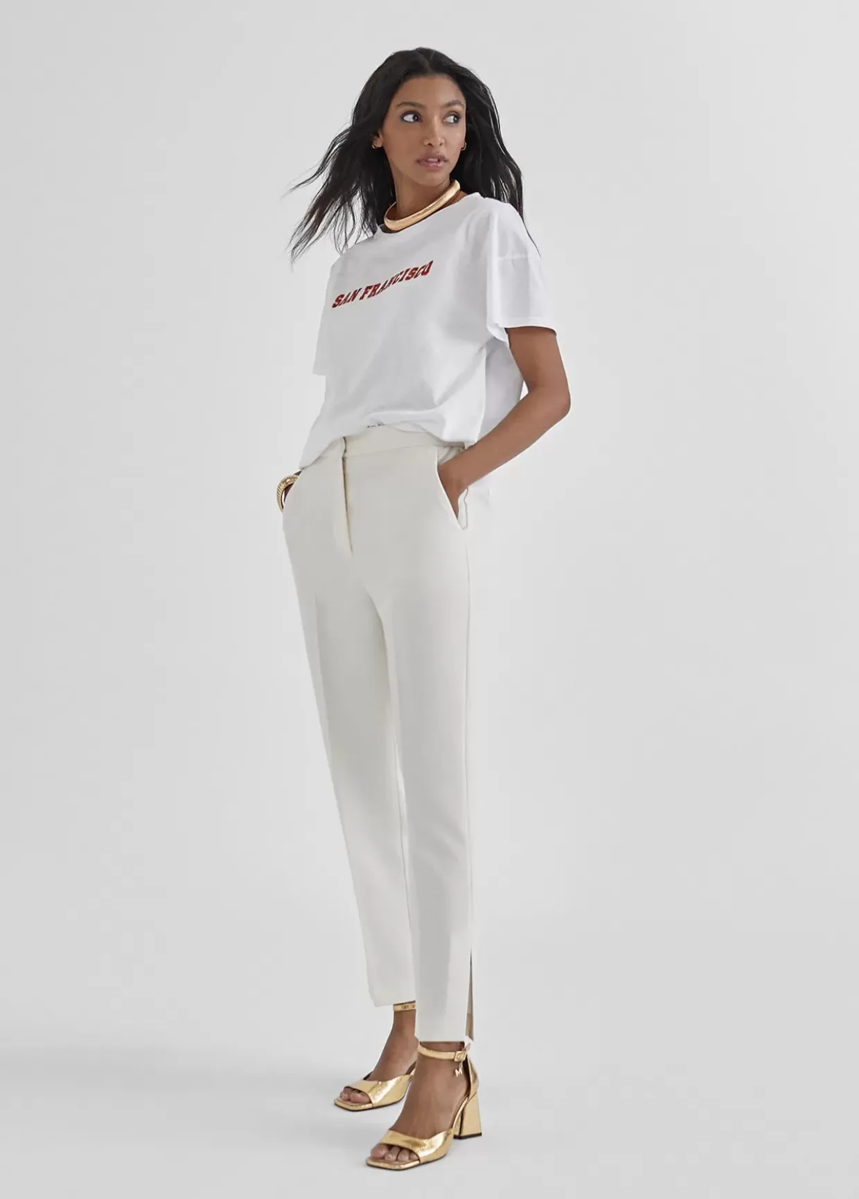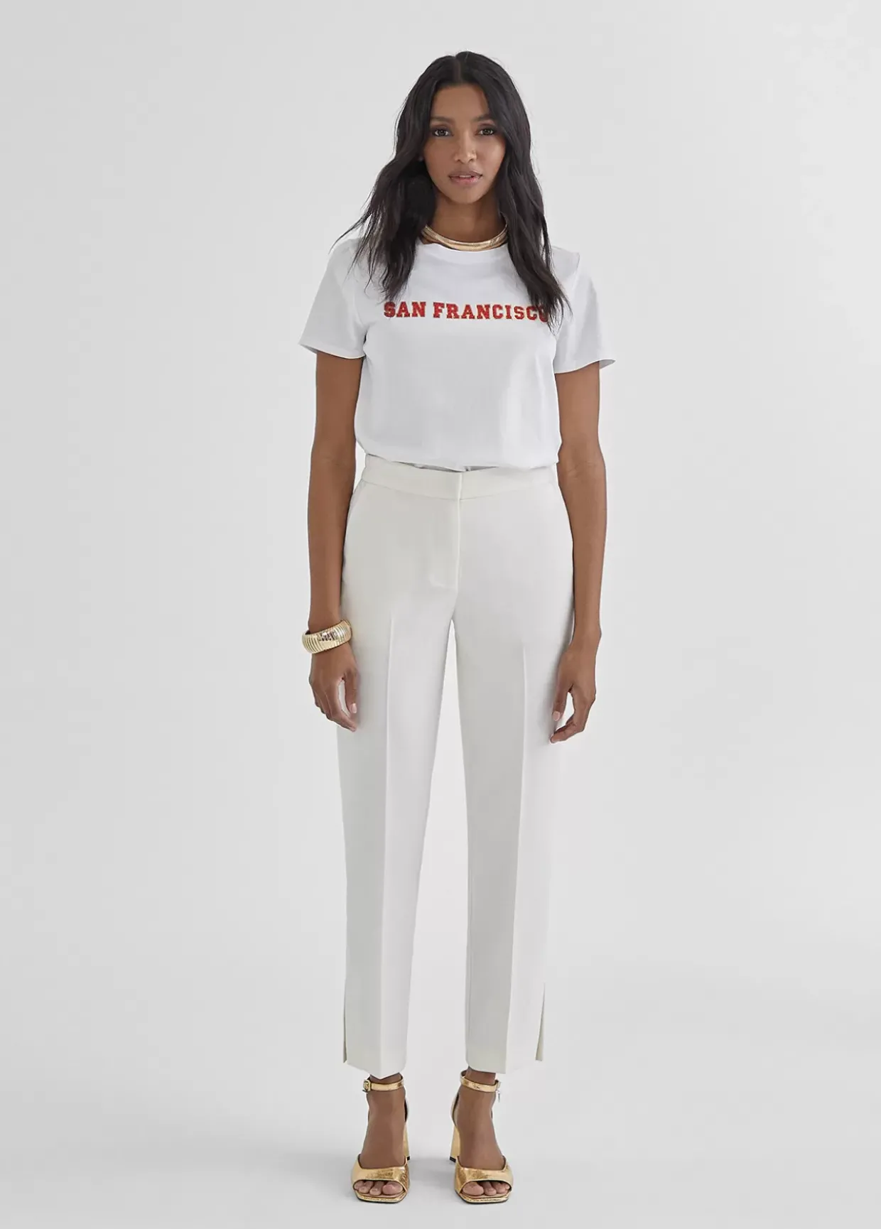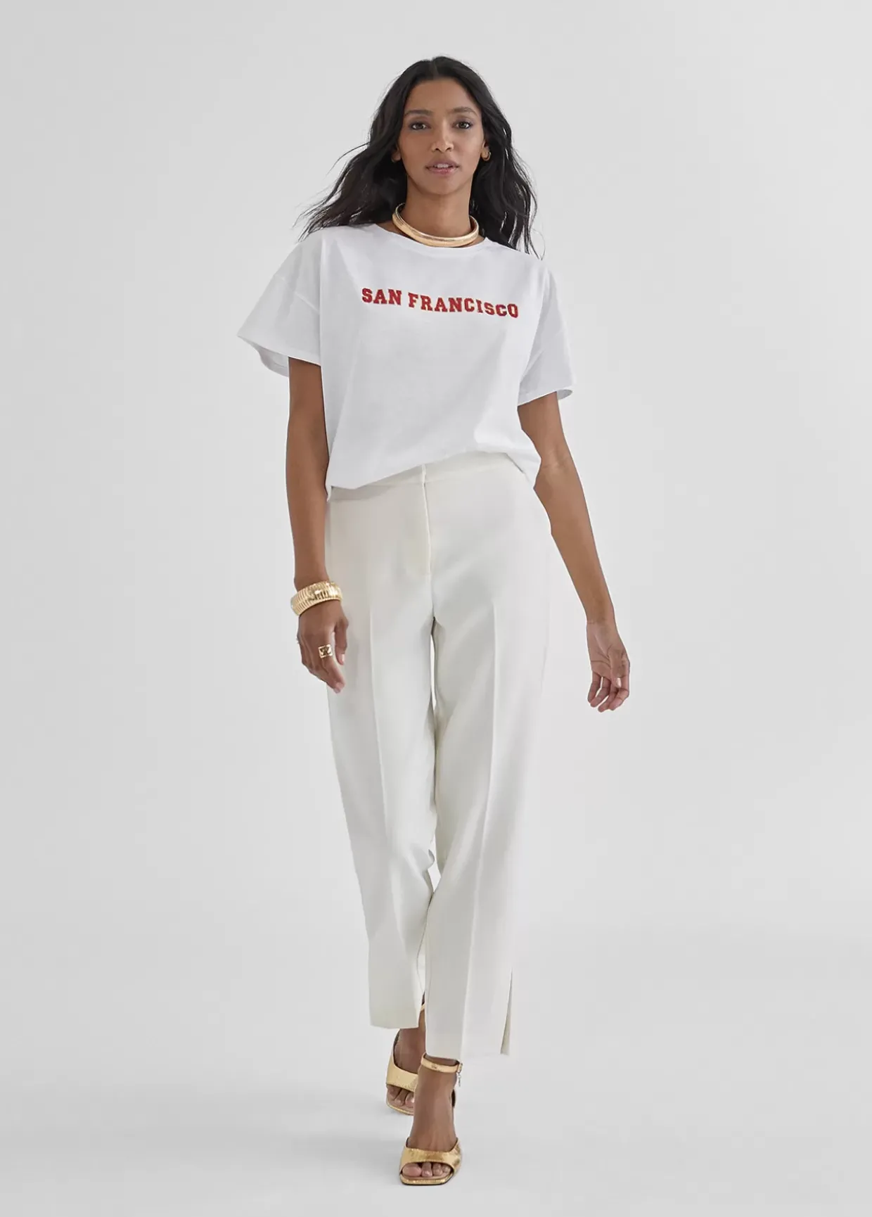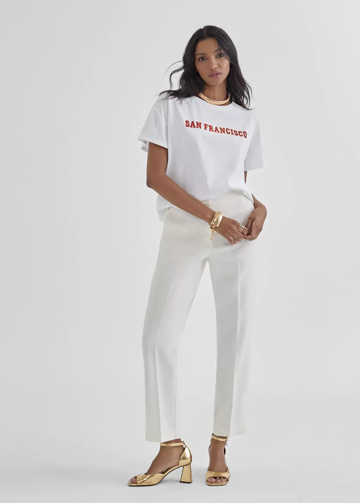 Camiseta de algodón con cuello caja y manga corta. Posicionado frontal «San Francisco» en color.