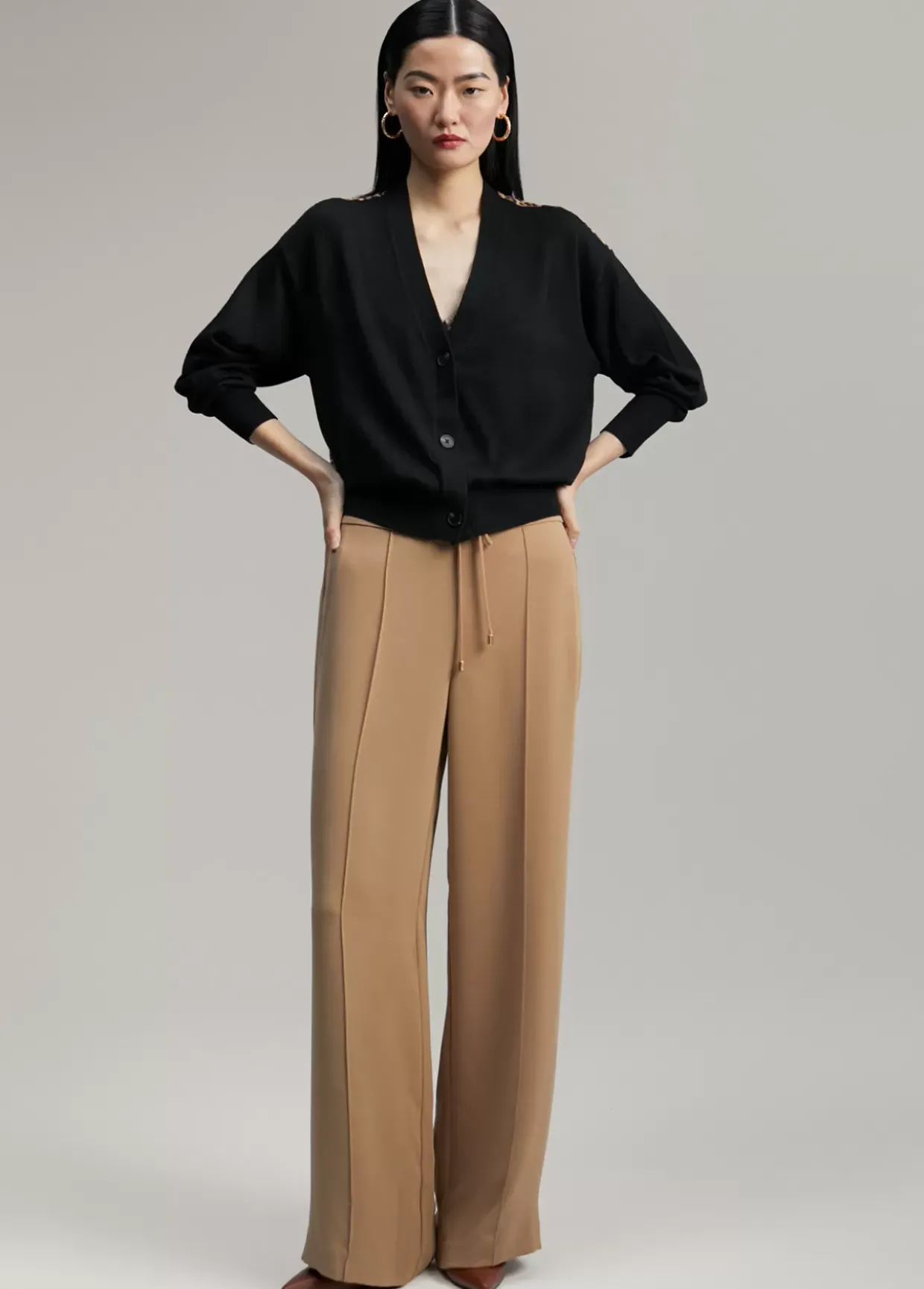 Cárdigan corto de punto y cuello pico. Cerrado con botones a tono. Espalda contrastada con tejido estampado animal print.