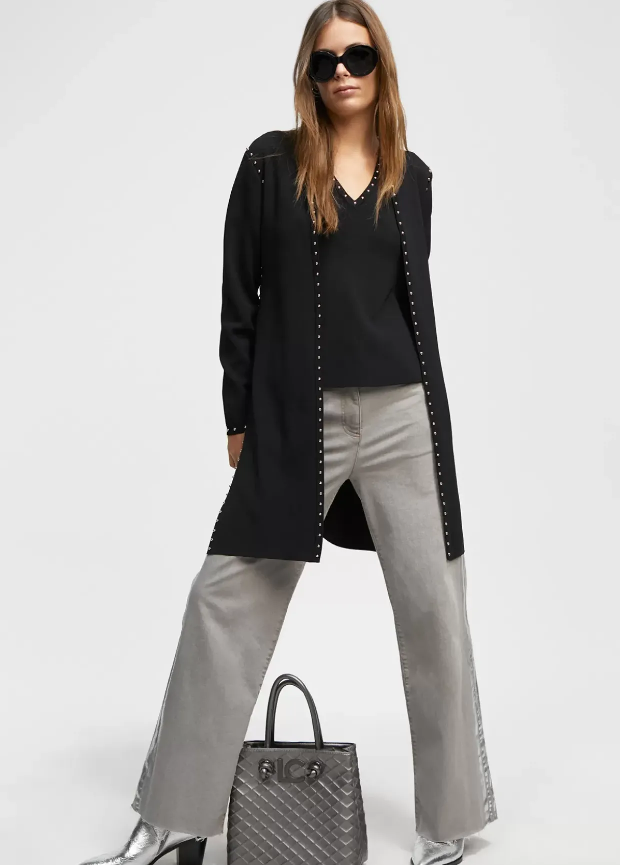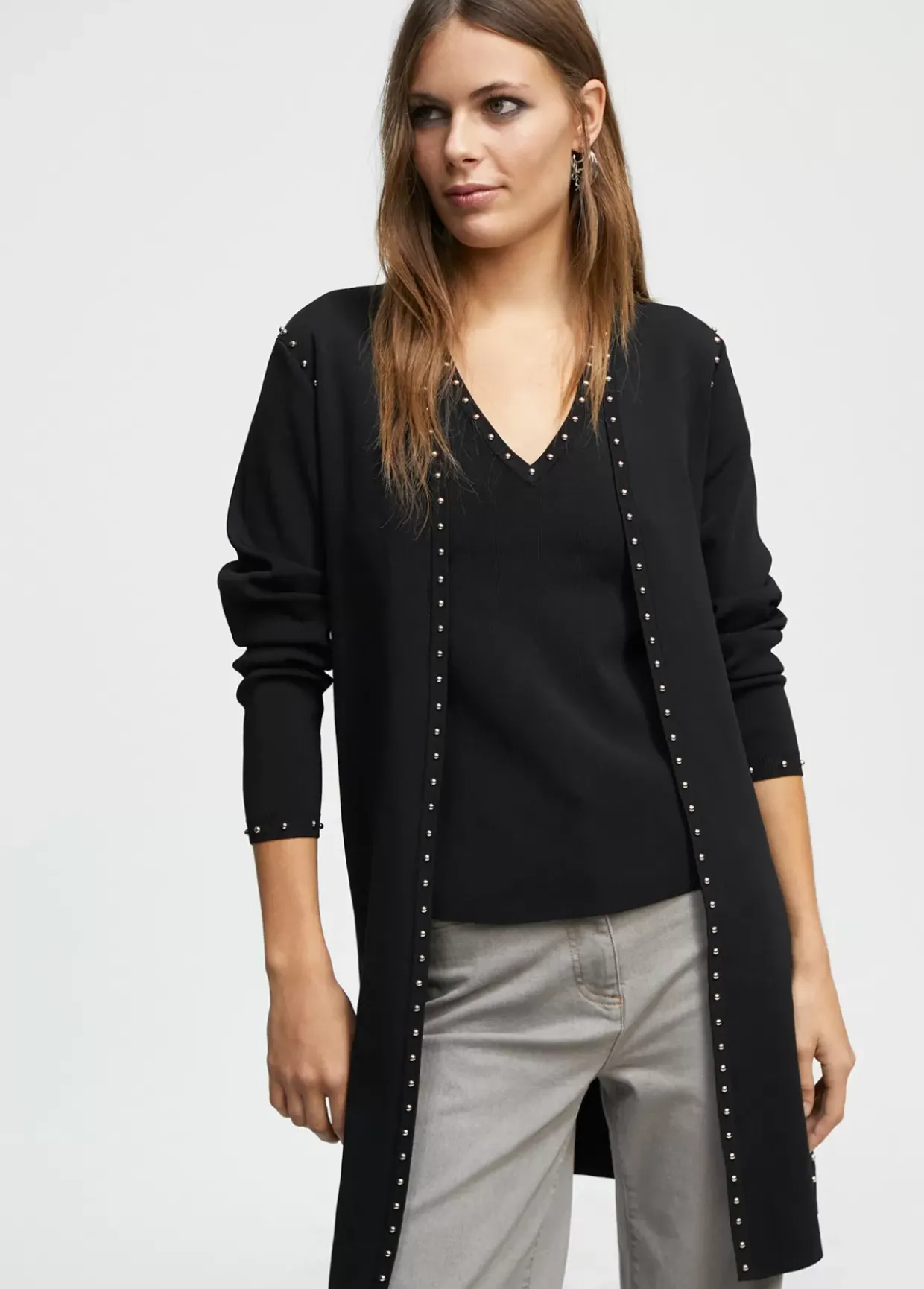 Cárdigan de punto con detalles de tachas doradas en hombro, puño y frontal.