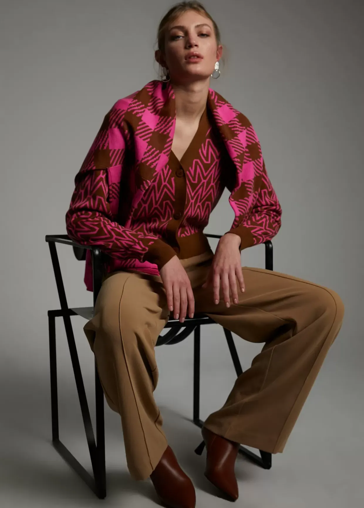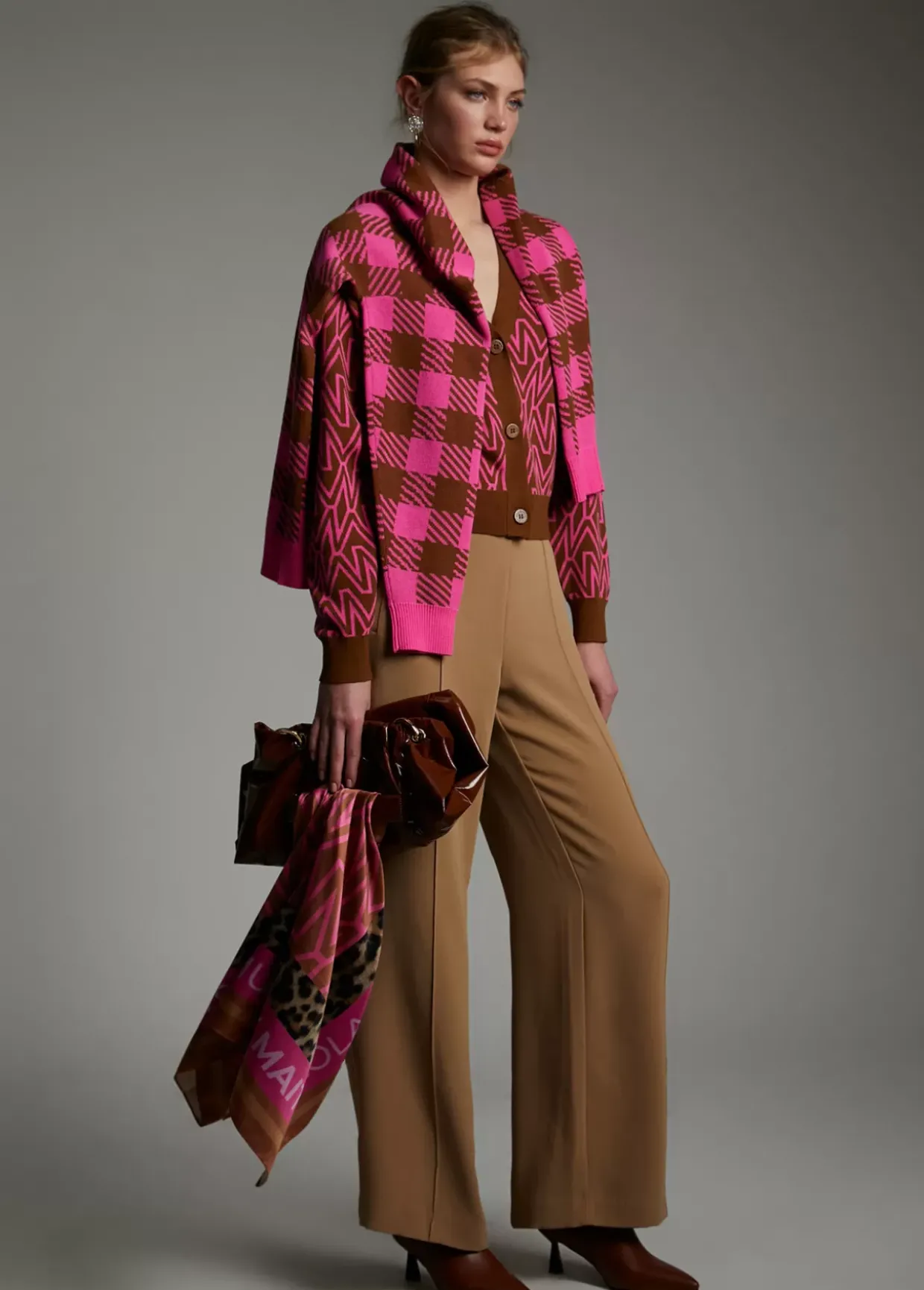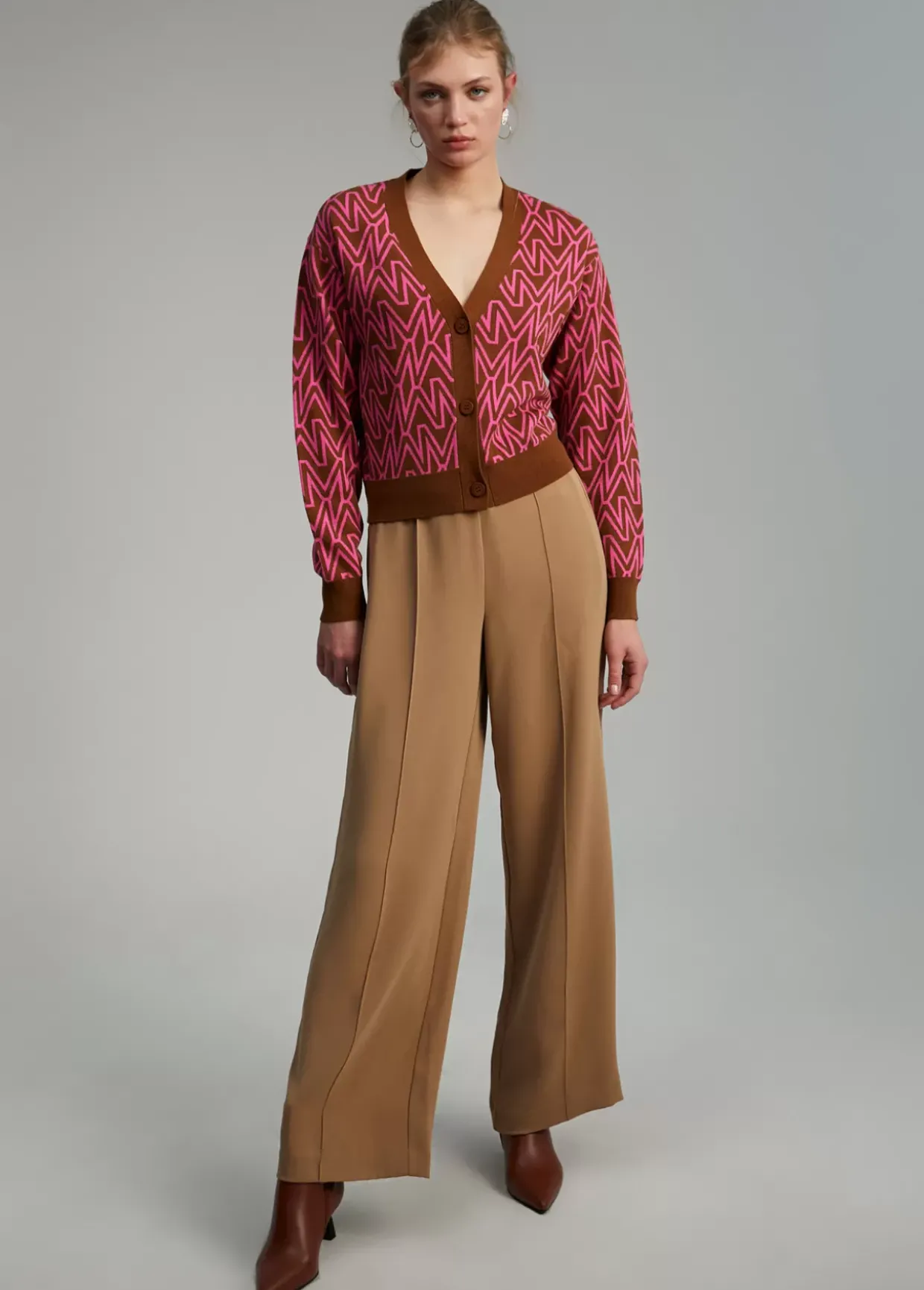 Cárdigan corto estampado monograma M bicolor. Cerrado con botones a tono. Rib contrastado en frontal, puños y bajo.