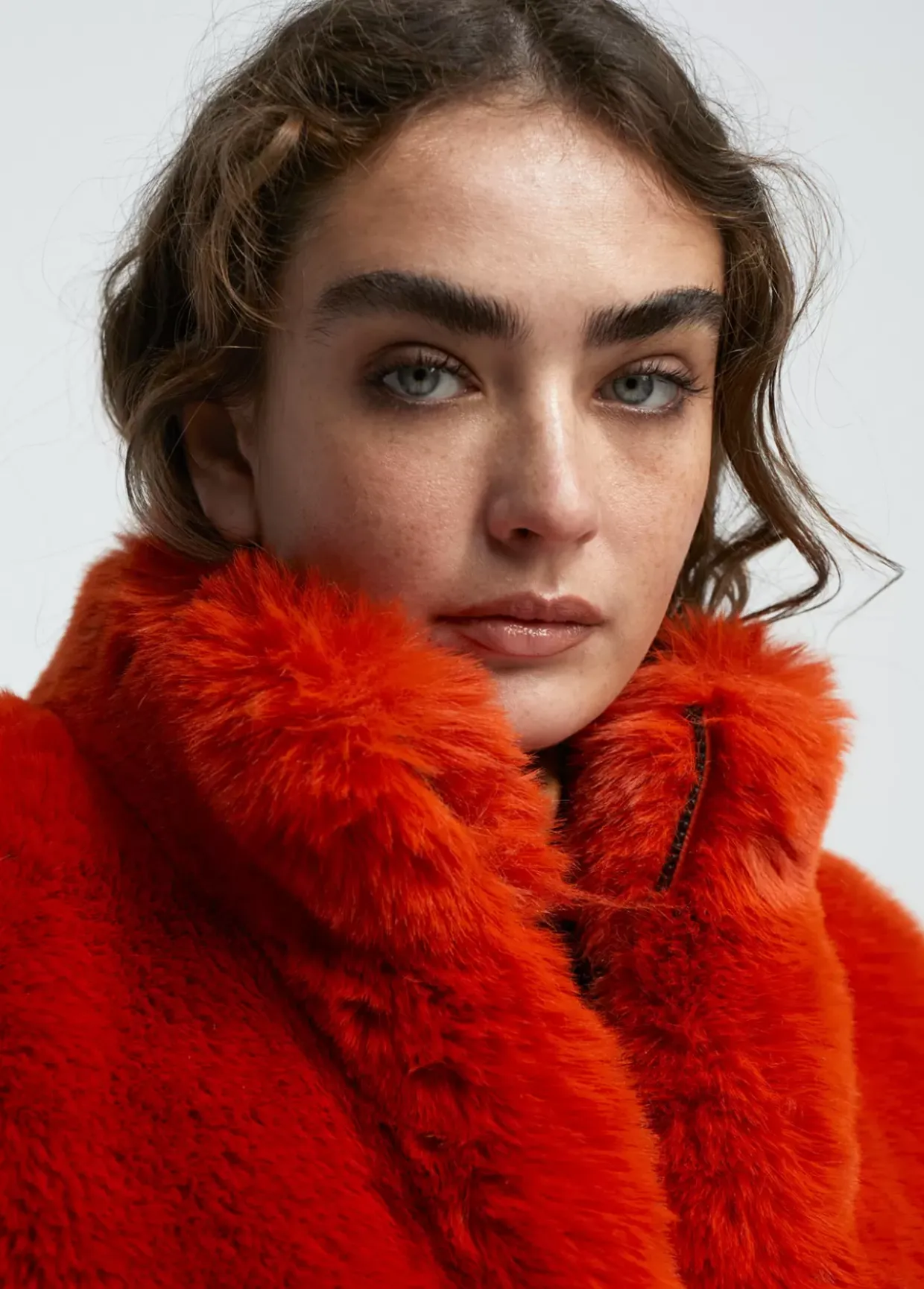 Chaleco corto de pelo. Cierre con cremallera de doble carro y bolsillos laterales.