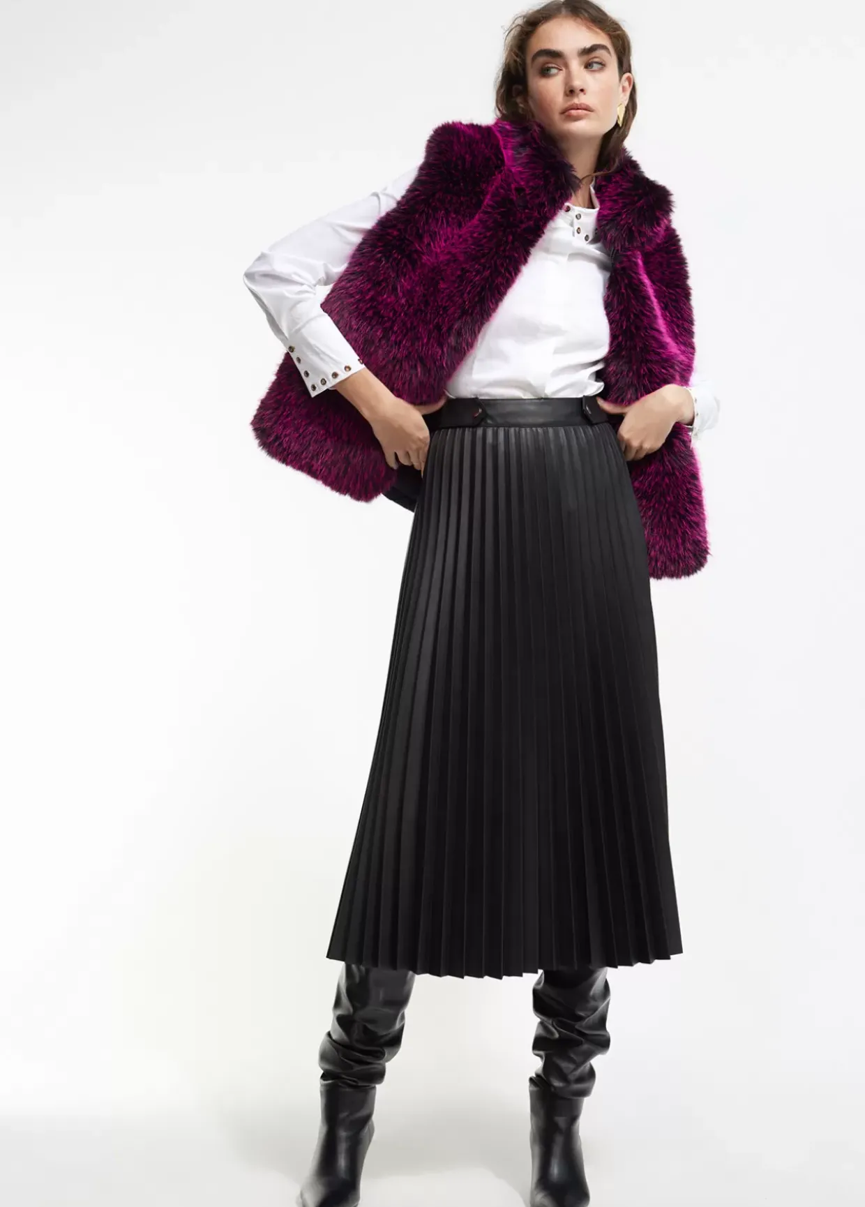 Chaleco corto de pelo monocolor. Cierre frontal con cremallera. Bolsillos laterales. Espalda de nylon acolchada.