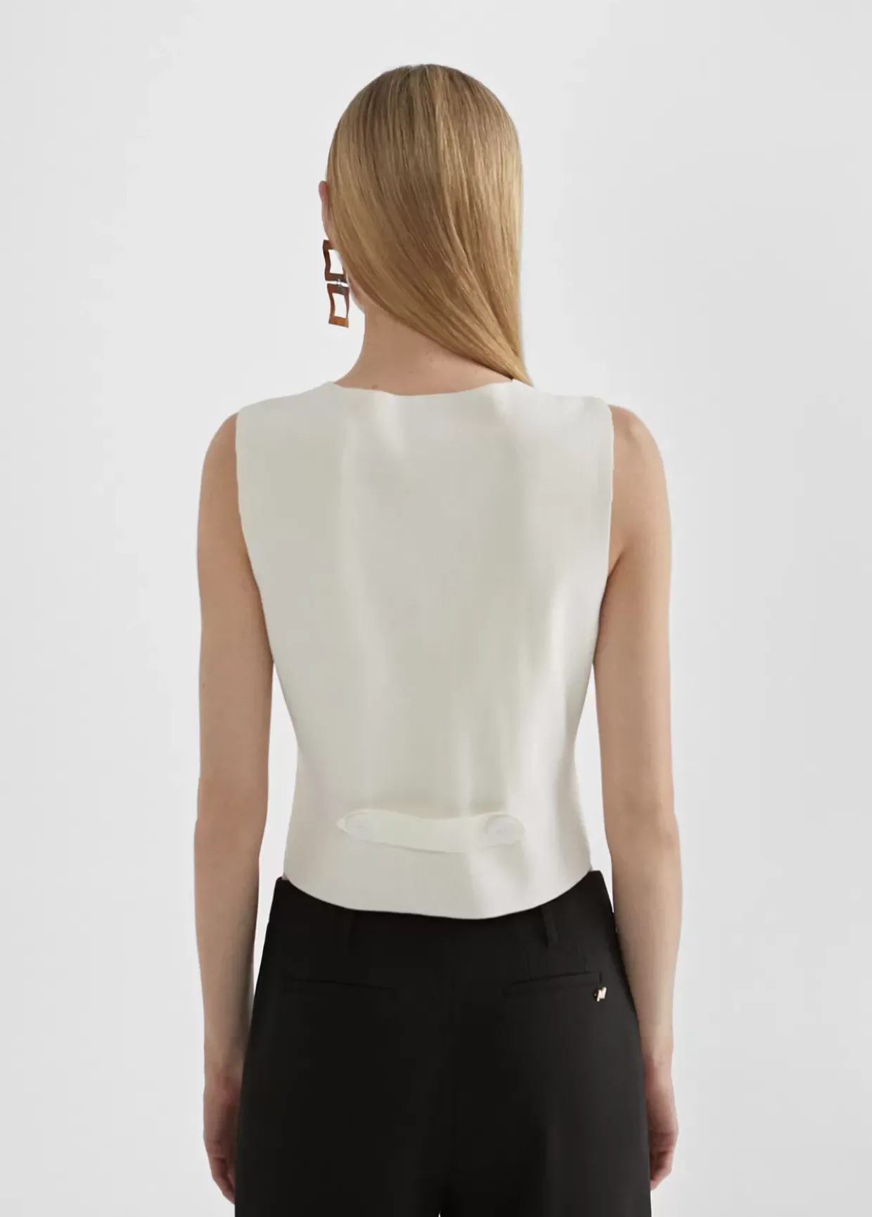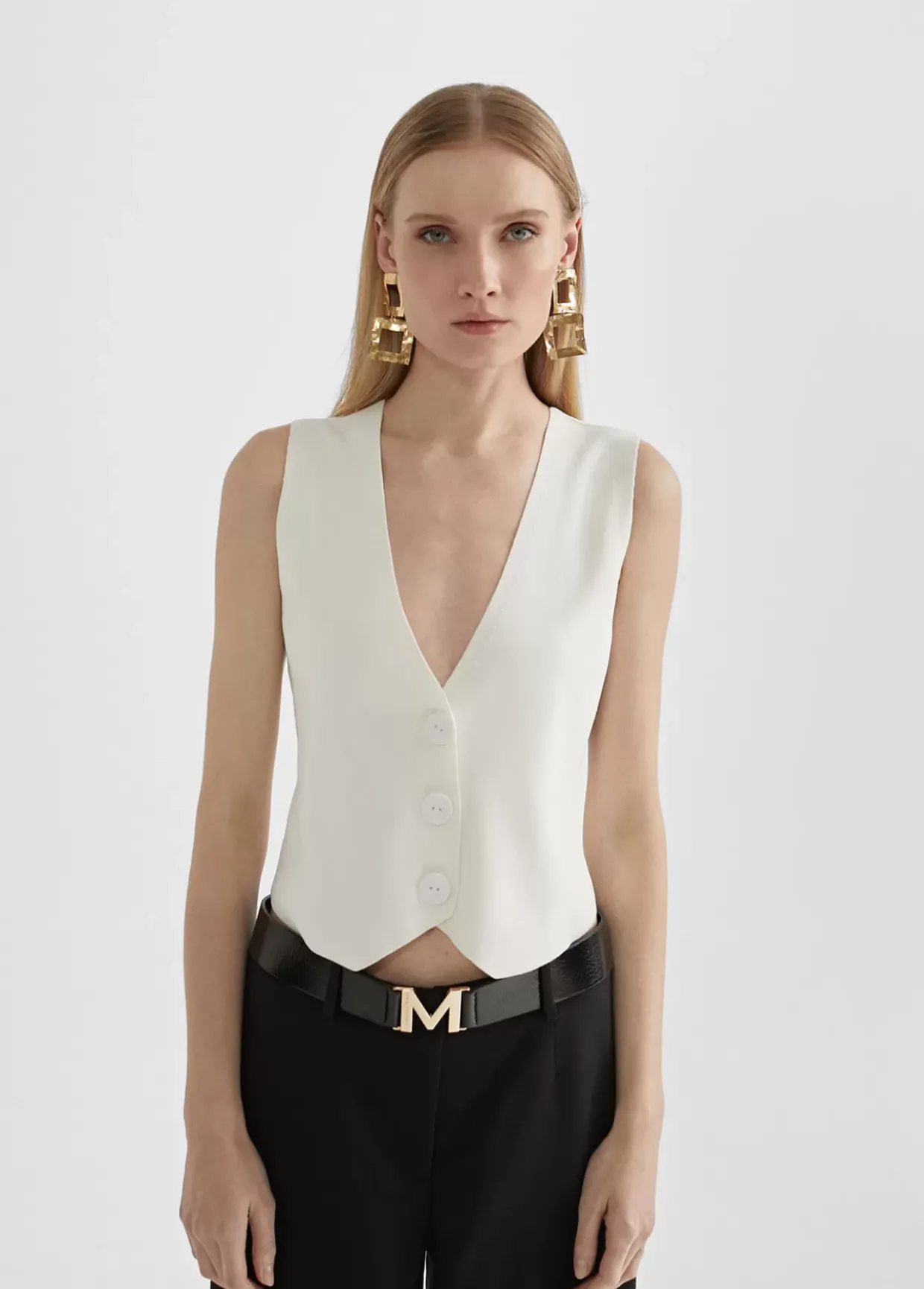 Chaleco de punto mono color. Escote pico y cierre con botones dorados.