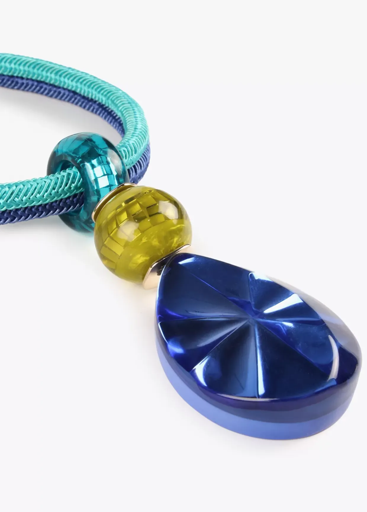 Collar con colgante de maxi piezas de diferentes colores. Cierre ajustable y medallita logotipada.