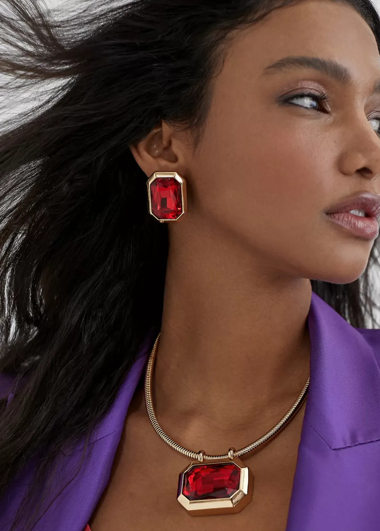 Collar dorado con maxi colgante pieza octogonal con engarce dorado.