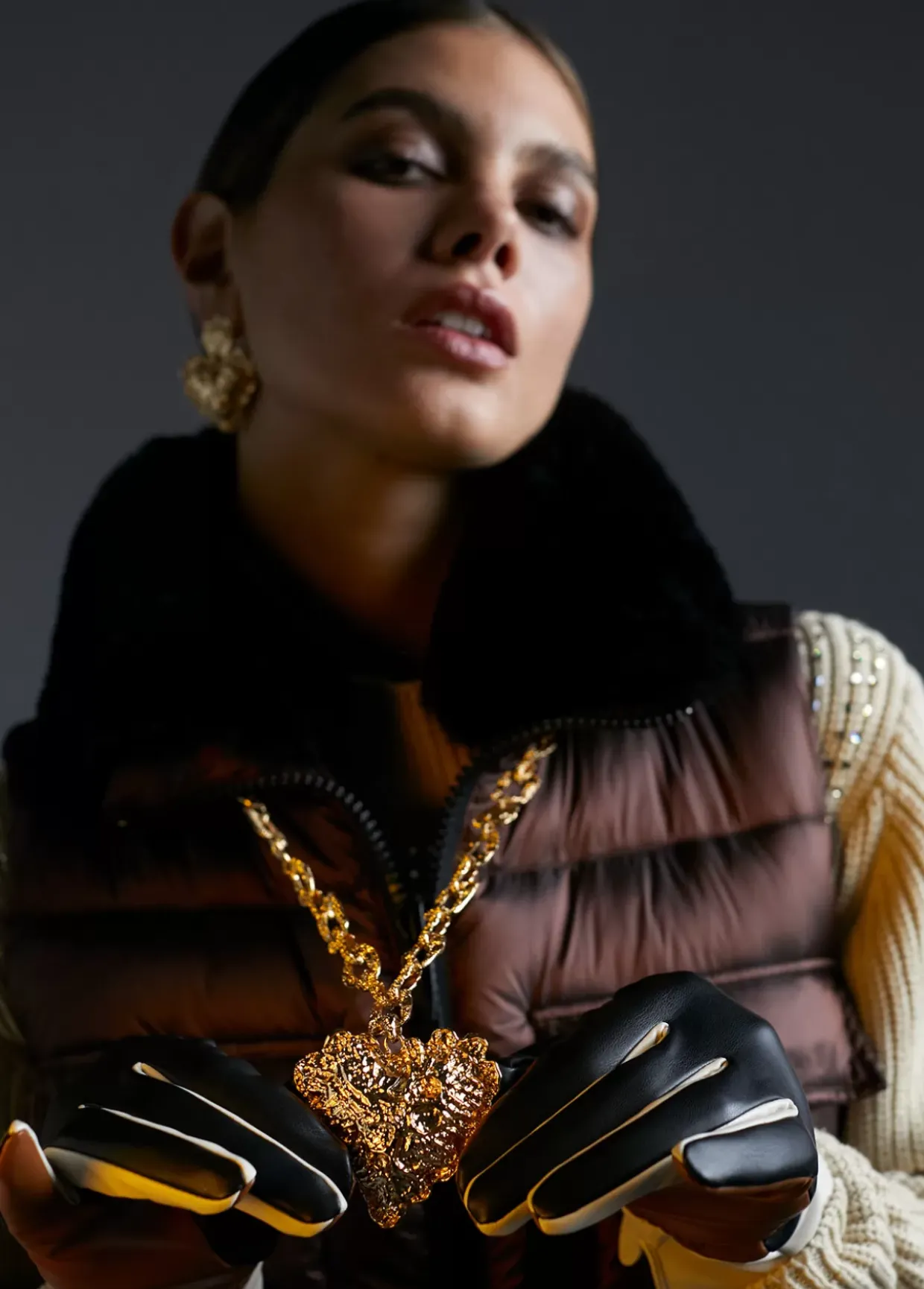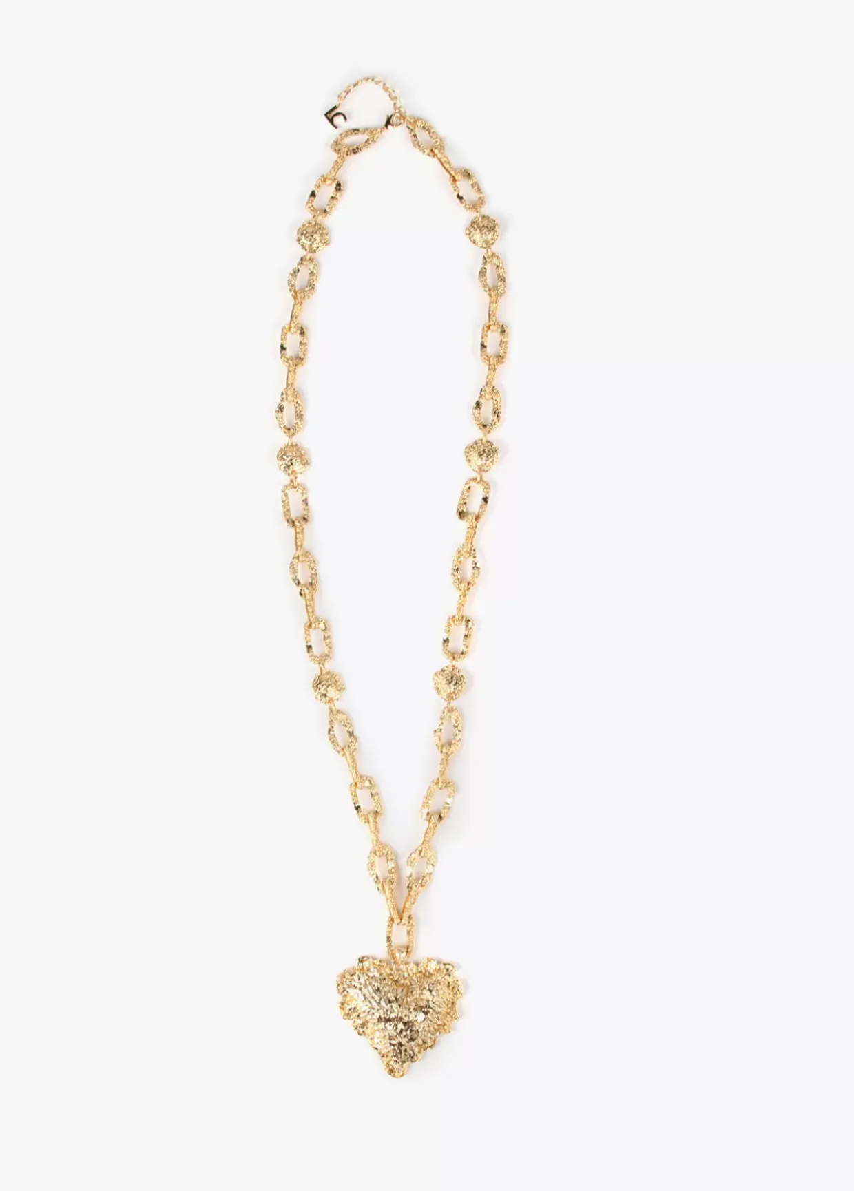 Collar dorado con textura rugosa y maxi corazón colgante. Cierre ajustable.
