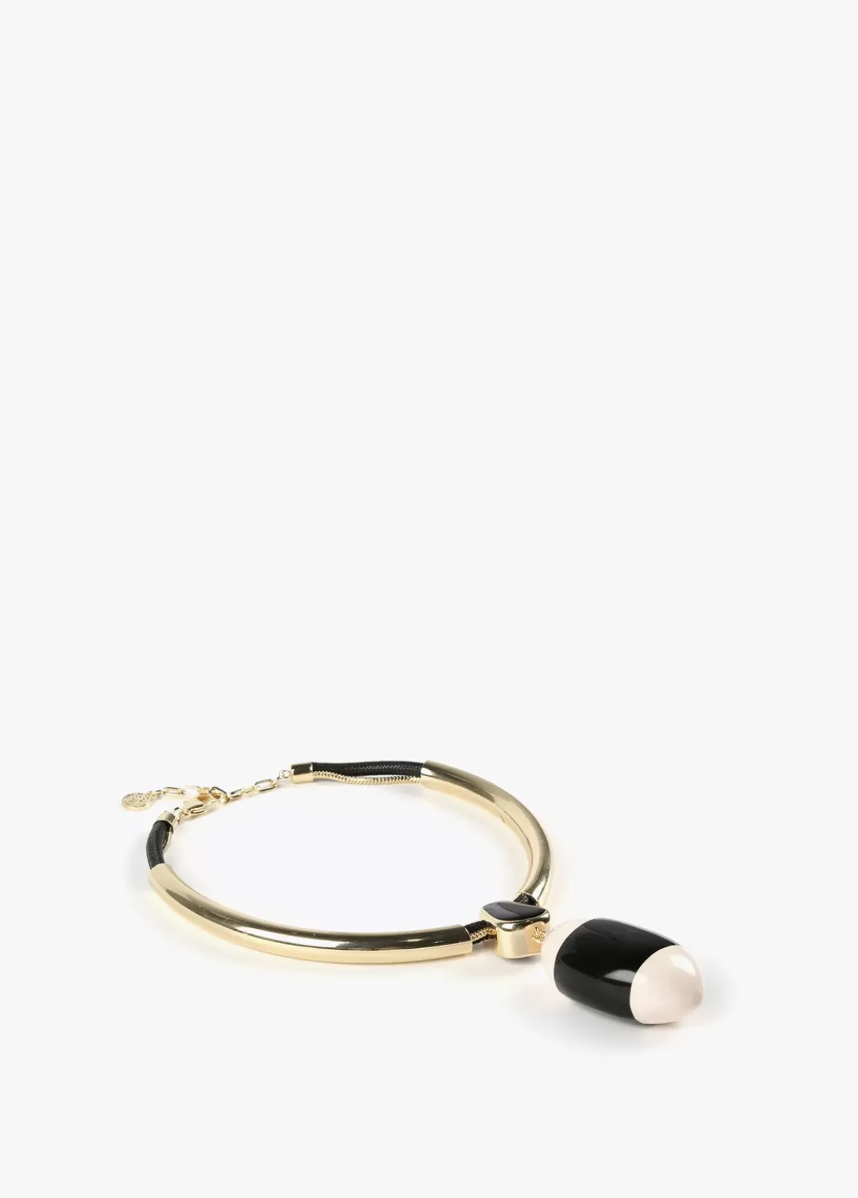 Collar dorado tipo gargantilla black&white de cordón con maxi pieza bicolor. Cierre ajustable y medallita logotipada.