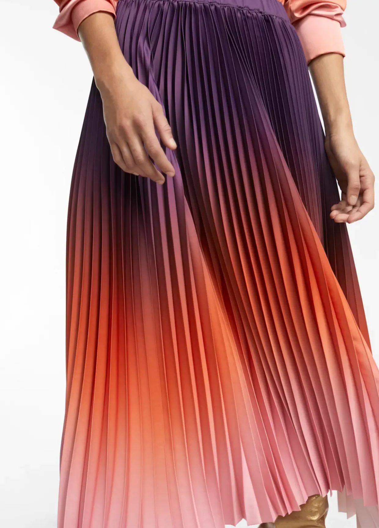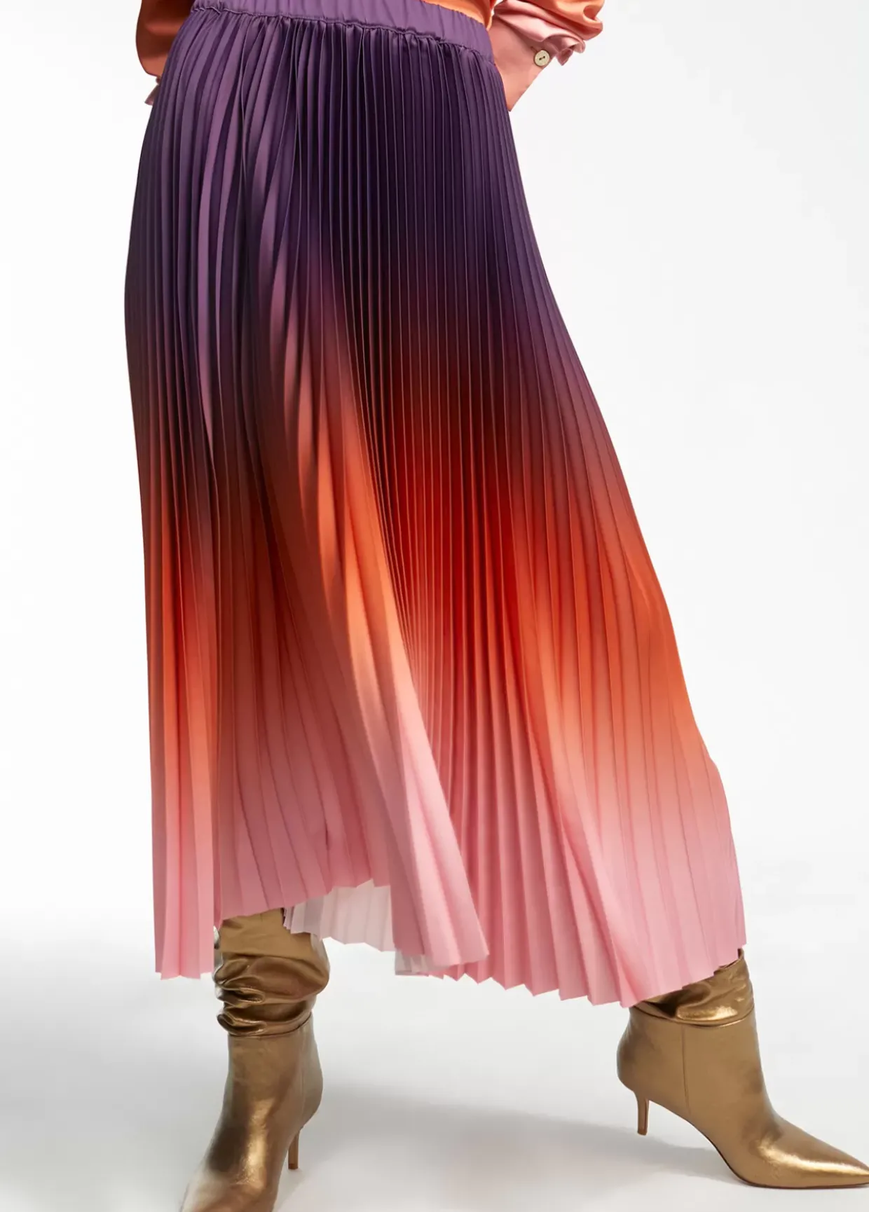 Falda plisada en color degradé. Cintura ajustable y de largo midi.
