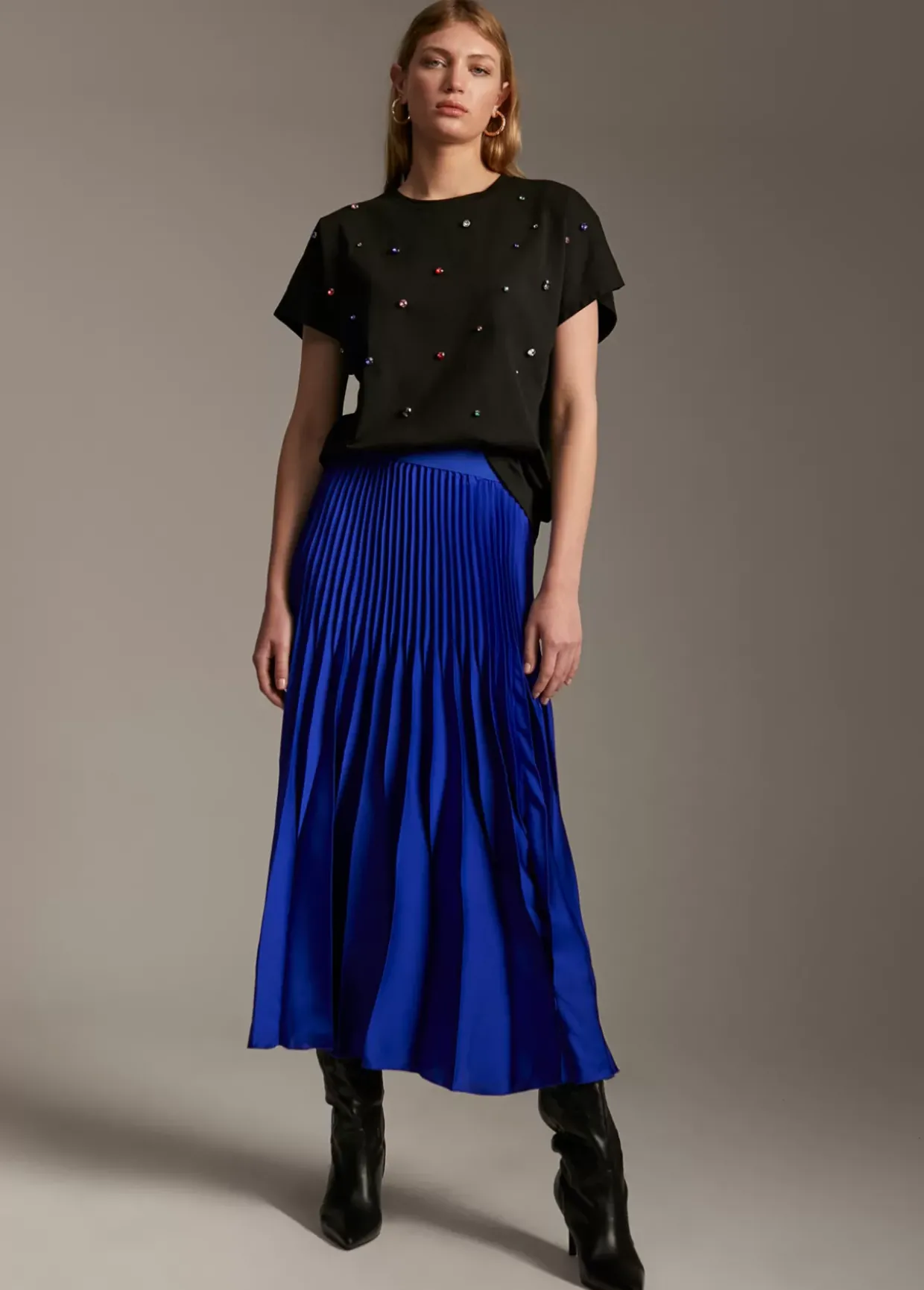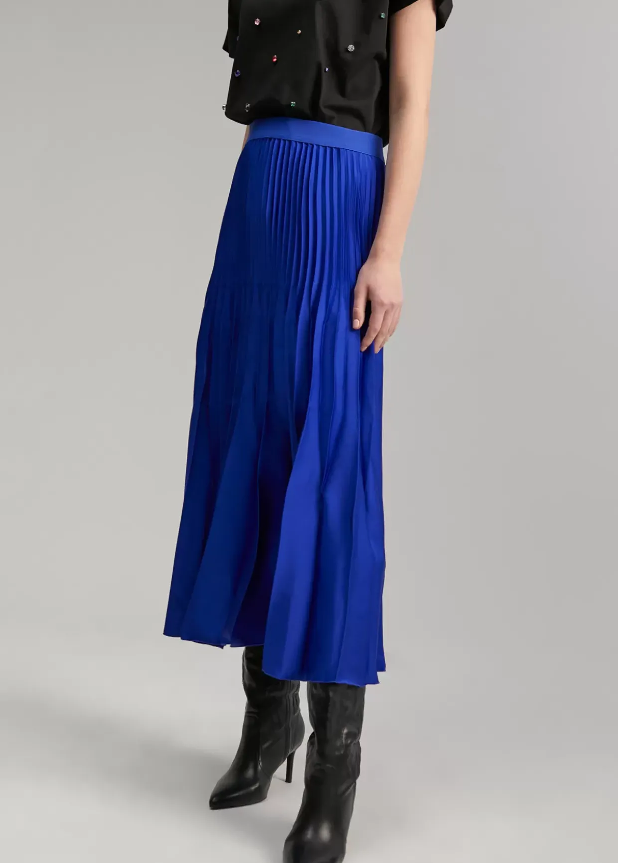 Falda plisada de largo midi. Cintura elástica.