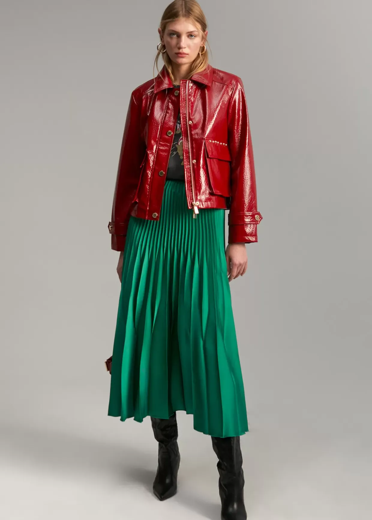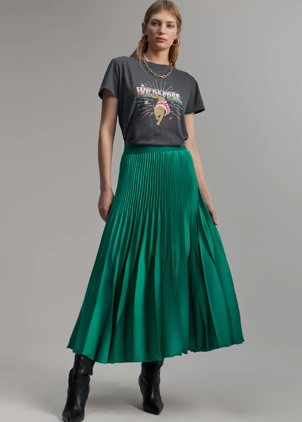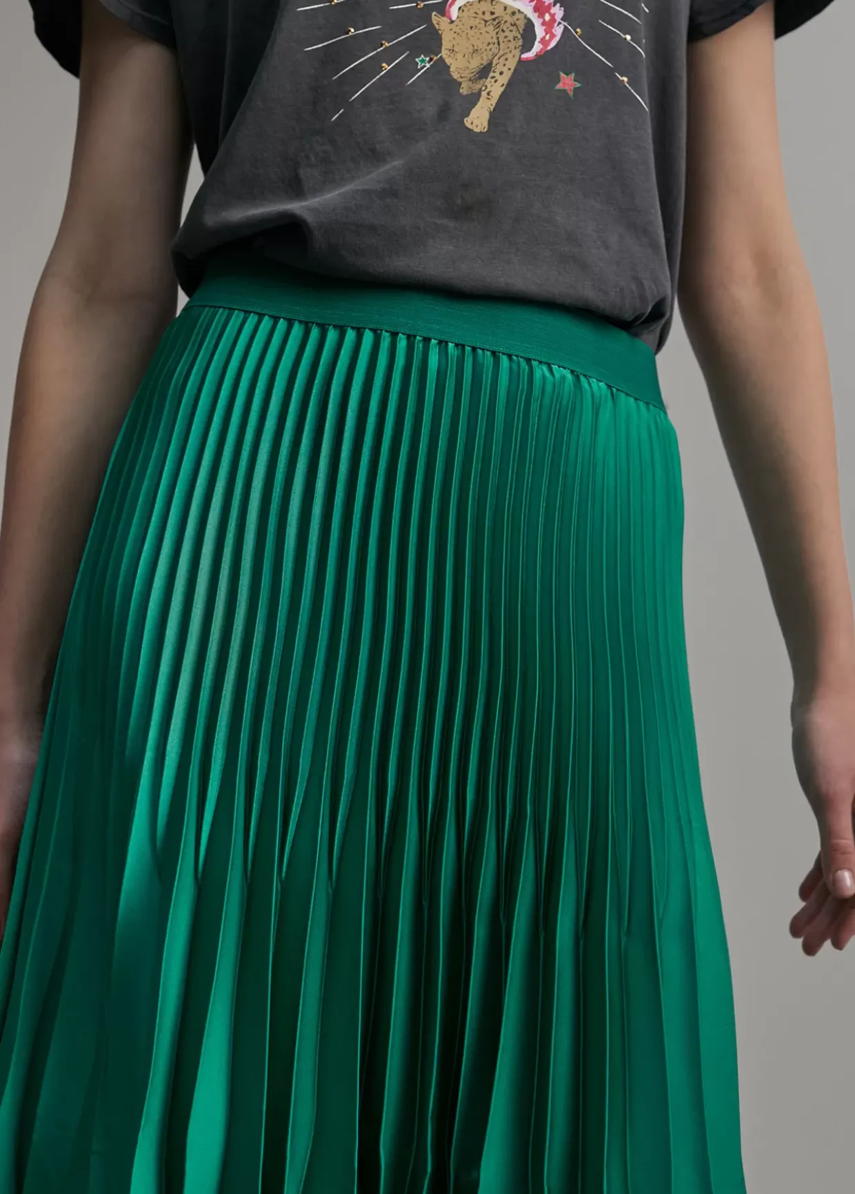 Falda plisada de largo midi. Cintura elástica.