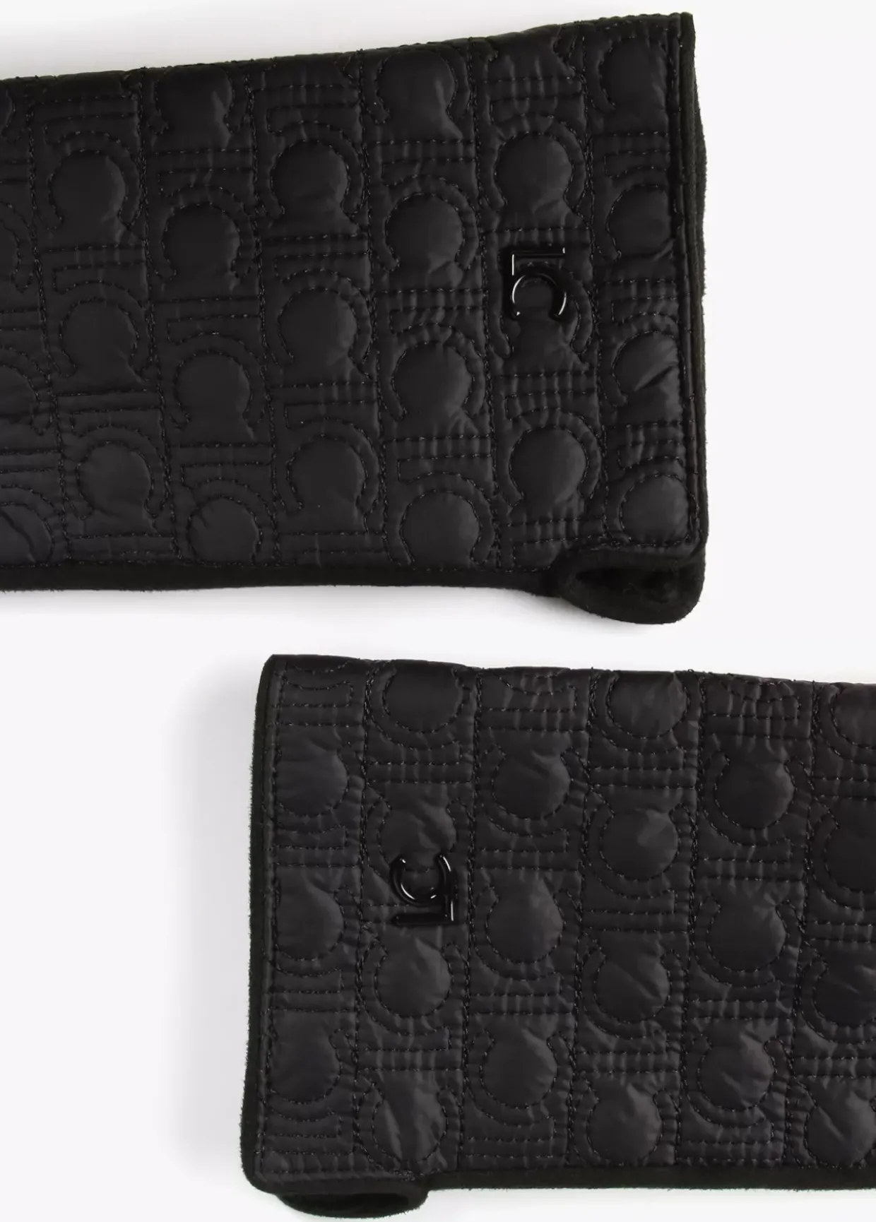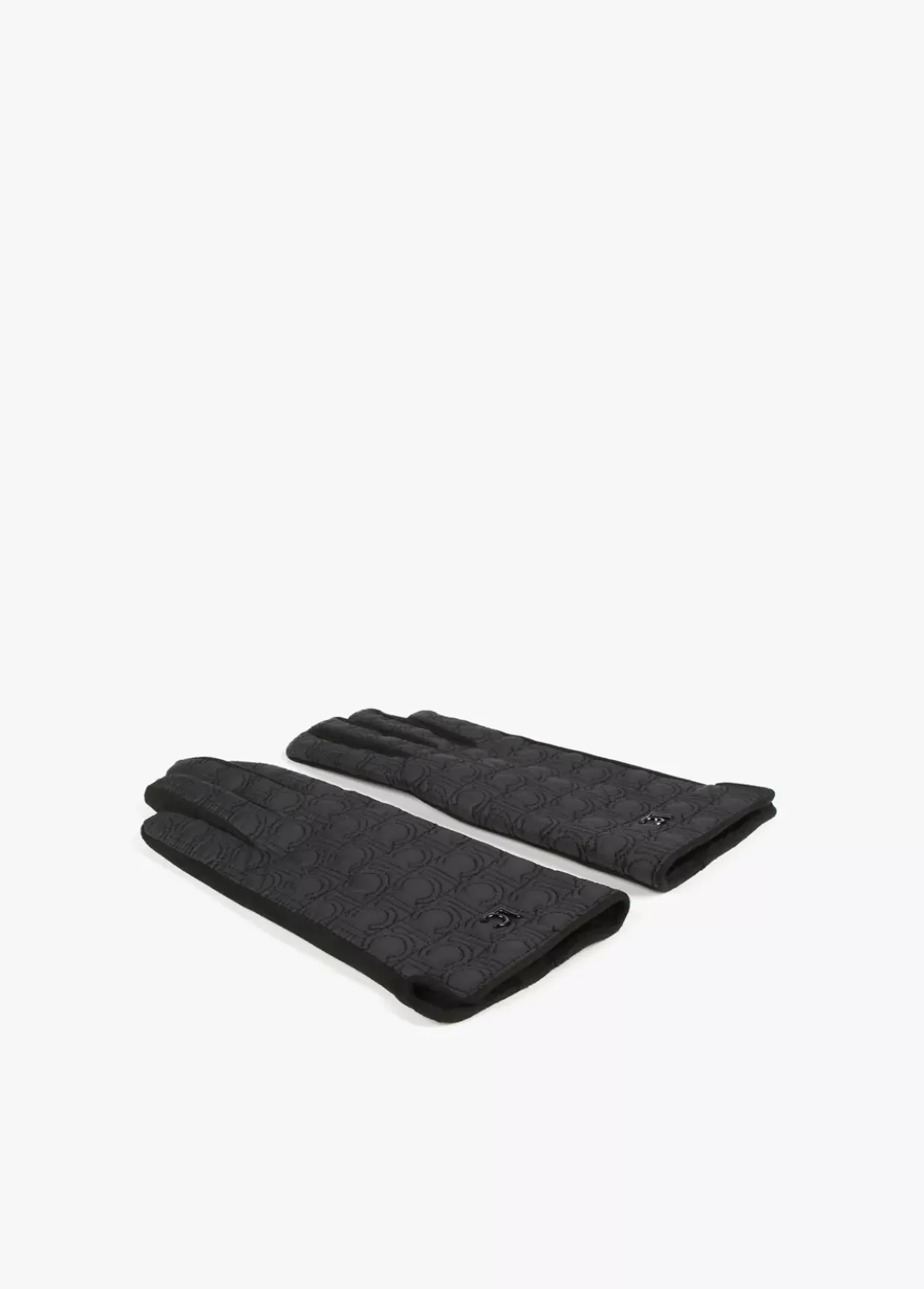 Guantes acolchados de nylon con monograma bordado y letras logo lacadas en parte superior.