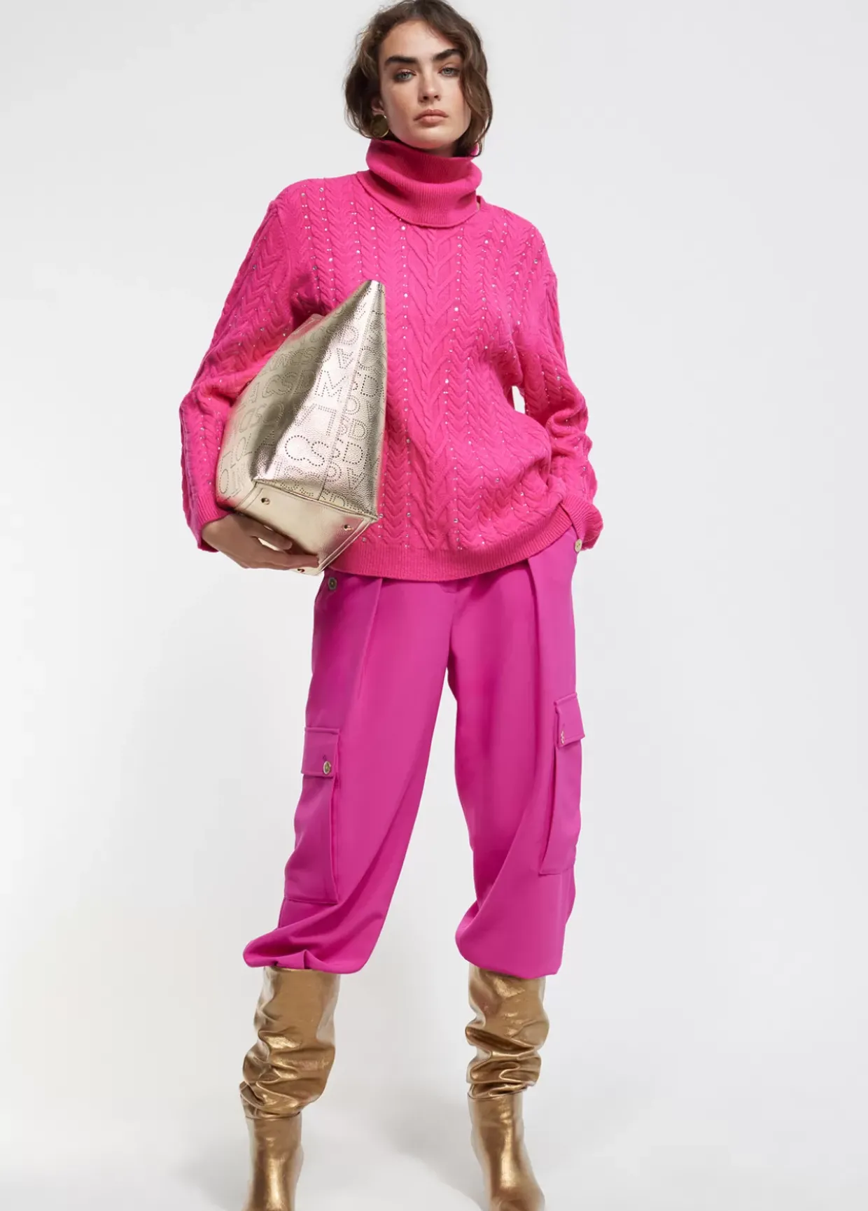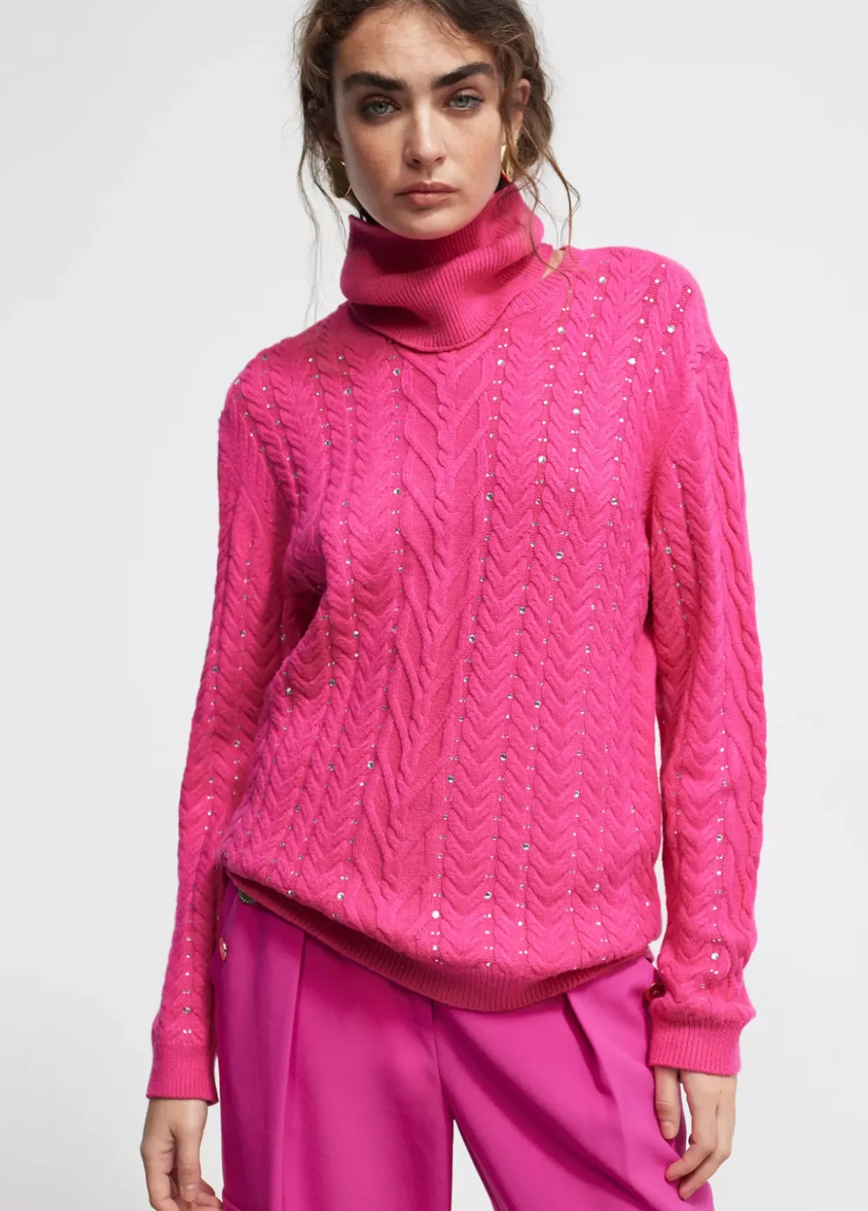 Jersey de puto con cuello extraíble. Detalle frontal de trenzado con strass contrastado.